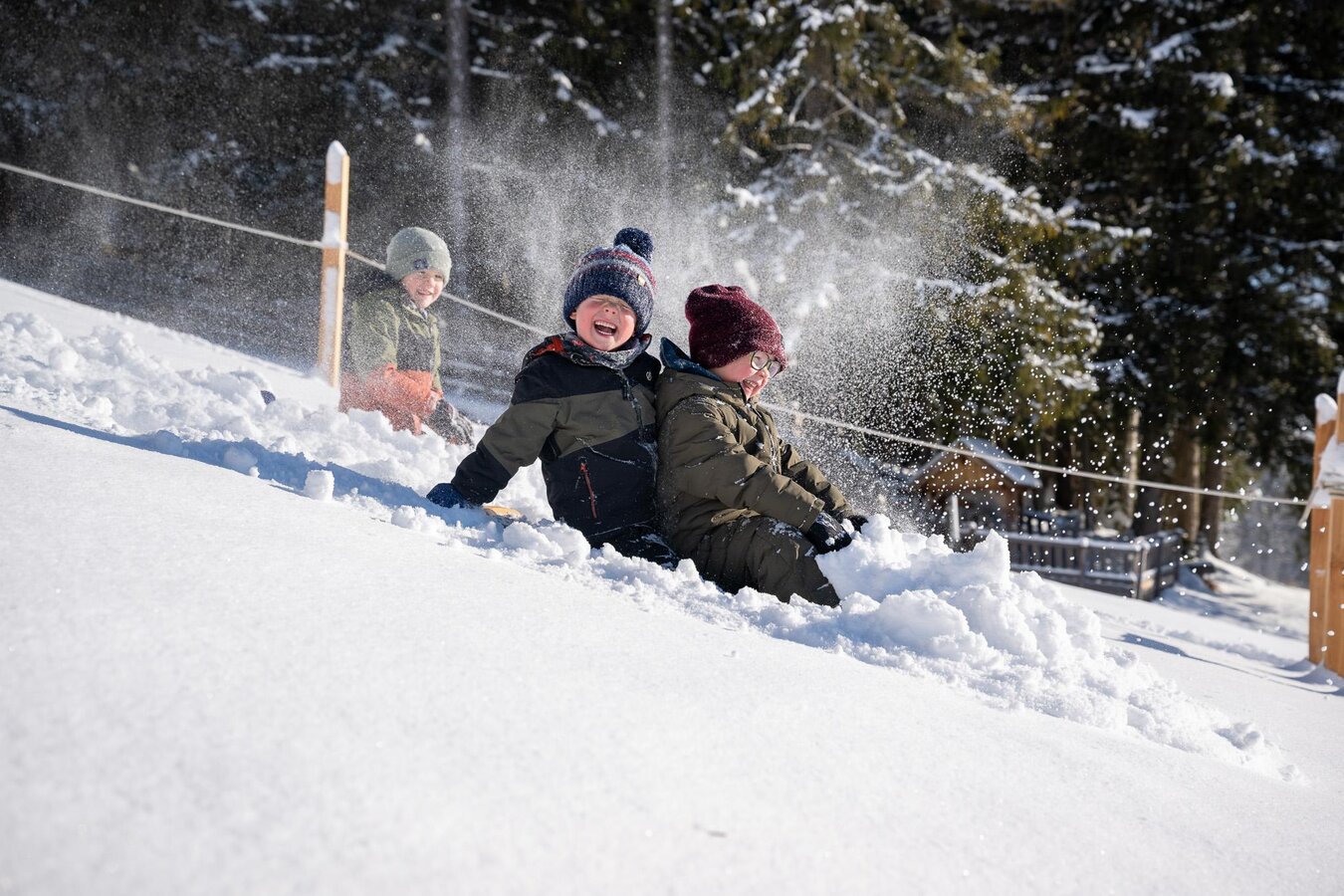 Direkt bei der Hütte befinden sich die kleine Ramsauer Wasserwelt, eine alte begehbare Linde sowie ein liebevoll gestalteter Waldspielplatz. Eine Riesen-Waldrutsche, Streichelzoo, Karussell und Brunnentrog laden zum Spielen, Entdecken und Toben ein- währenddessen werden regionale Almkulinarik serviert.