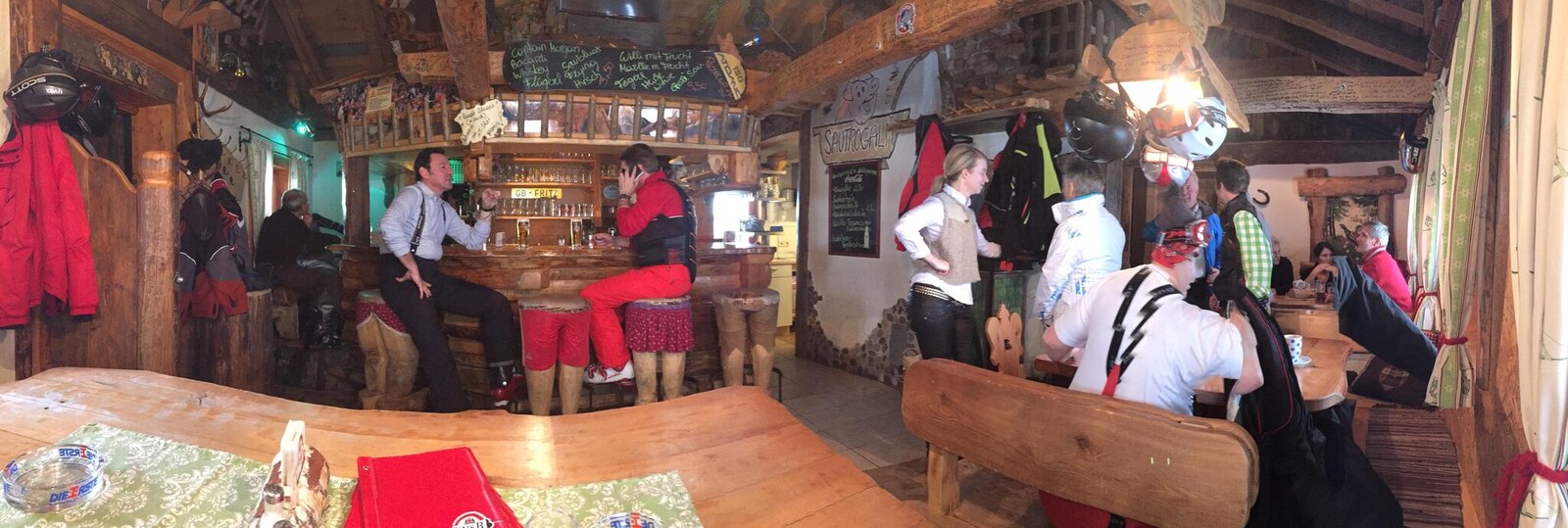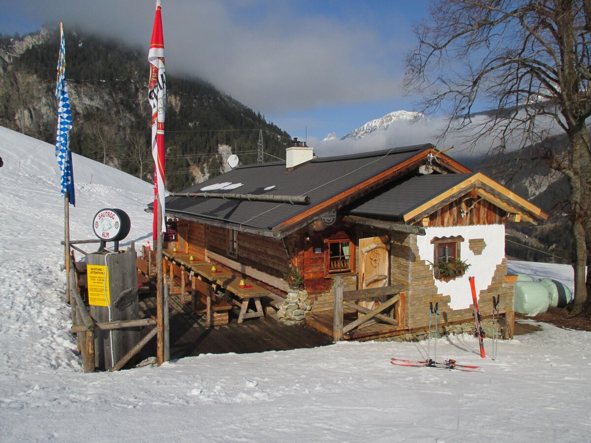 Genießen Sie die sonnige Terrasse der Sautrogalm auf der bestens präparierten Skipiste (Talabfahrt 1a - SilverJet) der Reiteralm.