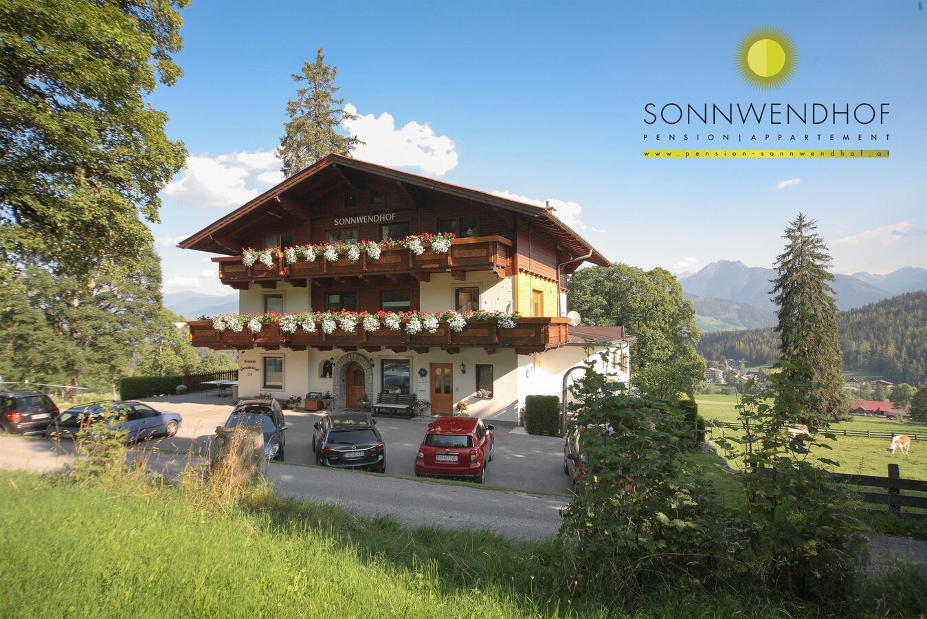 Unsere familiär geführte Frühstückspension und Appartement Sonnwendhof (Sommercard Partner) liegt in besonders sonniger,ruhiger Panoramalage in Ramsau am Dachstein. Schöner Panoramablick auf die Schladminger Tauern und das Dachsteinmassiv.