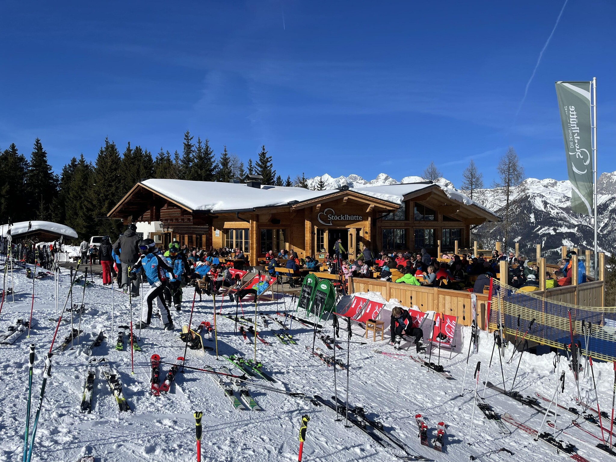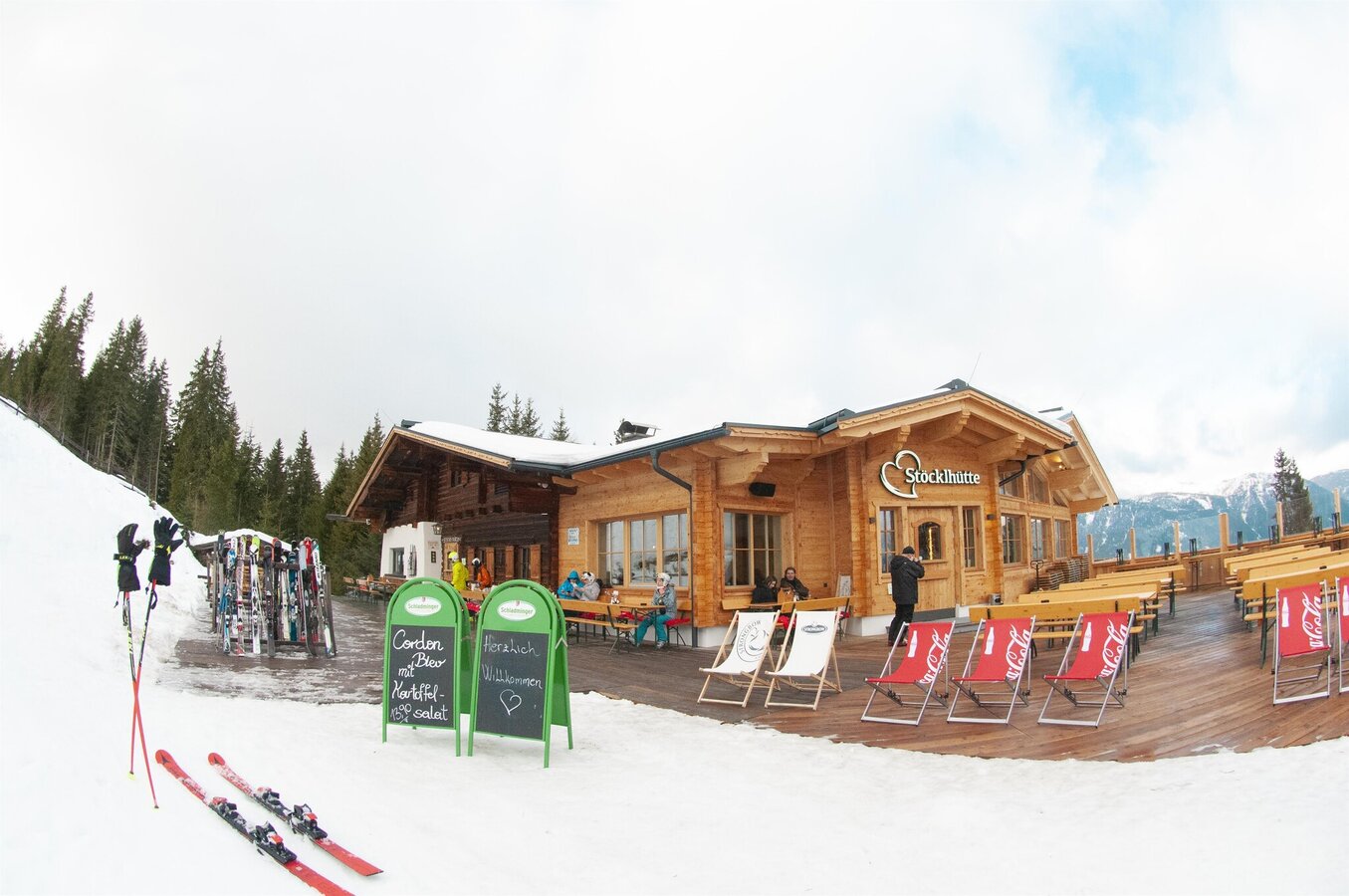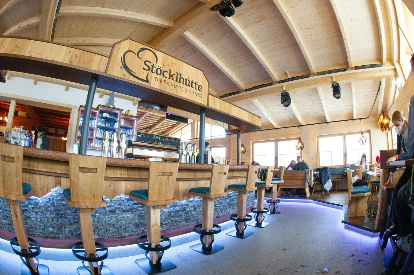 Ein optischer Hingucker ist die beliebte, im neuen Glanz erstrahlte Stöcklhütte. Genuss und Gemütlichkeit direkt an der Piste. Die Stöcklhütte eignet sich perfekt für eine erholsame Pause zwischen den Abfahrten - unser Lieblingsplatz dafür: auf einem der vielen Liegestühle die Sonne und den direkten Blick auf die Piste genießen. Während die Eltern sich zurücklehnen und genießen, können die Kinder sich auf dem Schneehügel vor der neuen Sonnenterrasse so richtig austoben.