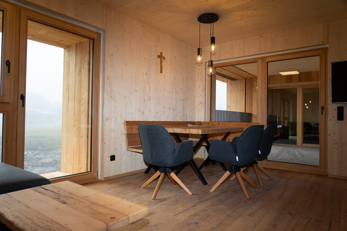 Dabei wurde ein neues Holzhaus im bestehenden Steinmauerwerk eines historischen Wirtschaftsgebäudes aus dem 18. Jahrhundert integriert. Schon beim Betreten des Hauses werden Sie vom wohligen Duft natürlicher Materialien umfangen, der Ihnen einen entspannten Urlaub verspricht.