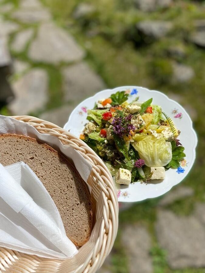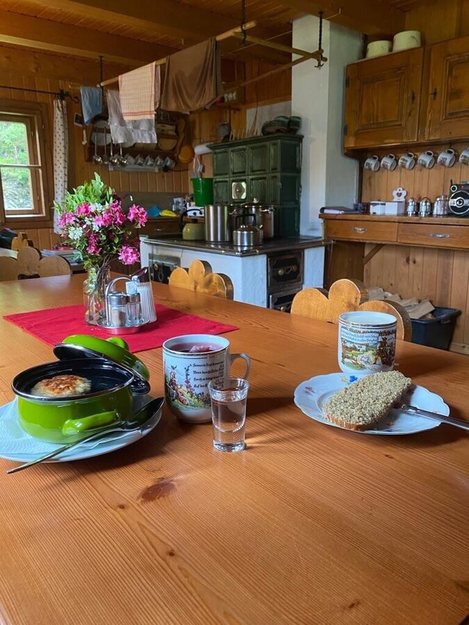 Verköstigt wirst Du mit selbstgemachter Butter und Käse von der Alm und weiteren hausgemachten Produkten vom eigenen Bauernhof.