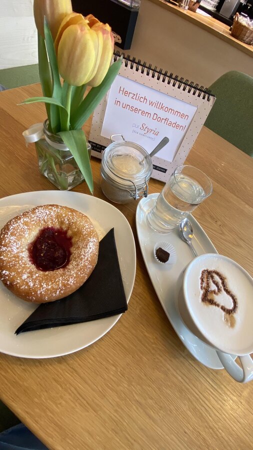 Bei uns gibt es köstlichen Kaffee, hausgemachte Kuchen, Suppen täglich frisch gekocht, leckeres Bio-Gebäck und Bio-Brot und eine Vielfalt an köstlich-steirischen Produkten. Uns ist es wichtig, mit Bauern und Betrieben in der Nähe zusammenzuarbeiten und wertvolle Lebensmittel anzubieten. Nachhaltigkeit und Wertschätzung liegen uns sehr am Herzen.