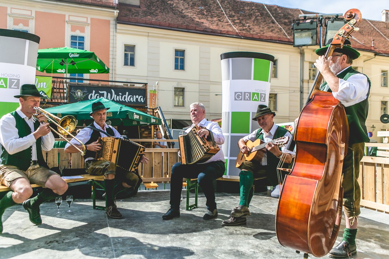 Am Sonntag bringen die Plattlergruppe d’Hahnlstoana Kleinsölk Heimatgefühl und gelebte Tradition in die Region Schladming-Dachstein, bevor später „Die Strubbis“ musikalisch für Stimmung sorgen.