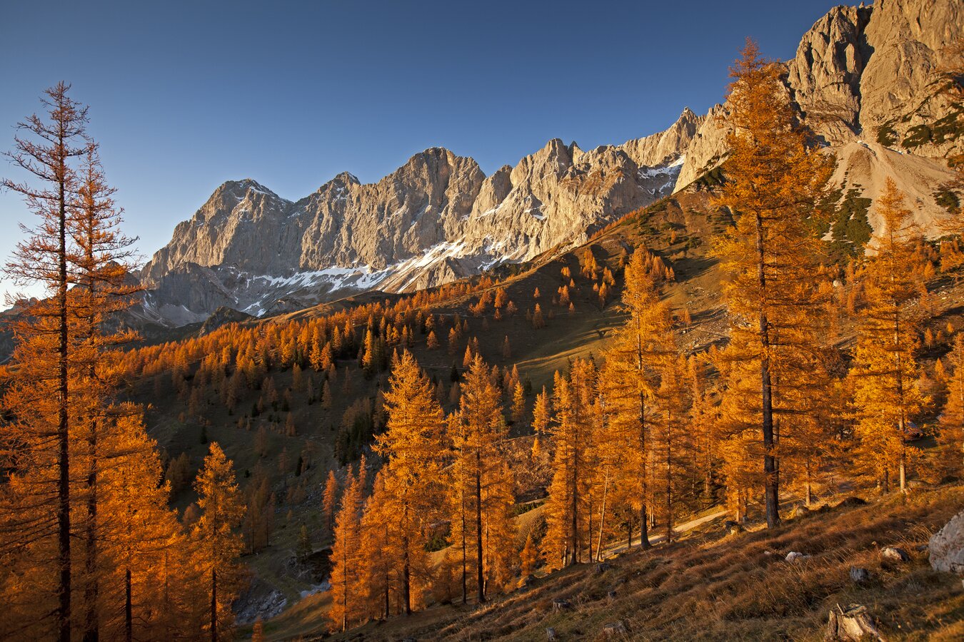 Rund um die Brandalm erstreckt sich ein vielseitiges Wandergebiet. Ihren Höhepunkt finden diese Touren am Brandriedel, der speziell in der bunten Jahreszeit mit Blick auf das Dachstein-Dreigestirn ein atemberaubendes Fotomotiv bildet.