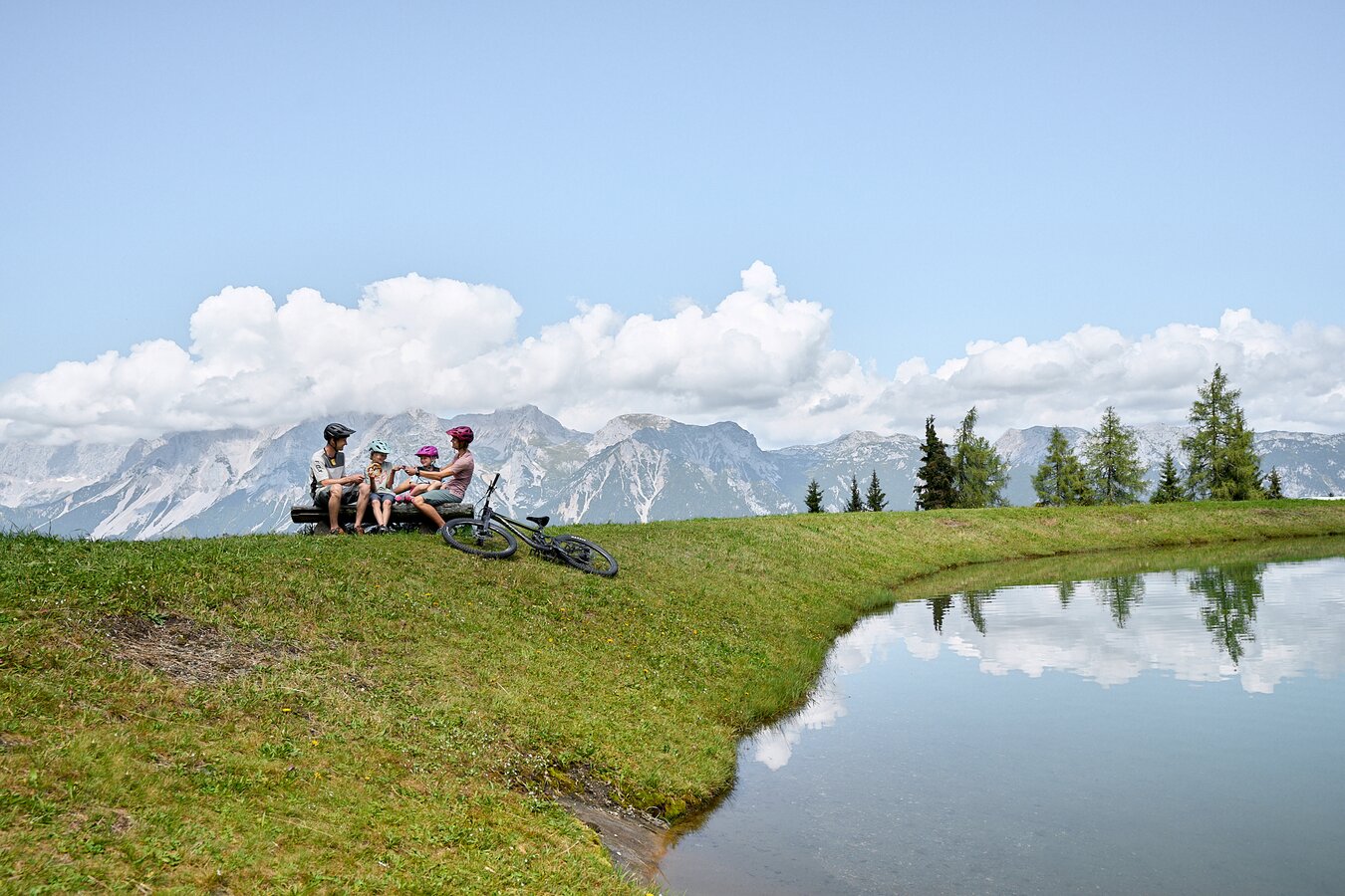 - Chill-Area am Planai Speicherteich mit gemütlichen Sitzbänken