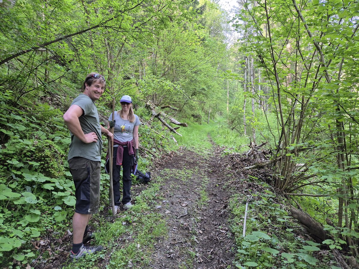 Bei der gemeinsamen Aktion werden kleinere Arbeiten am Weg direkt erledigt wie zB