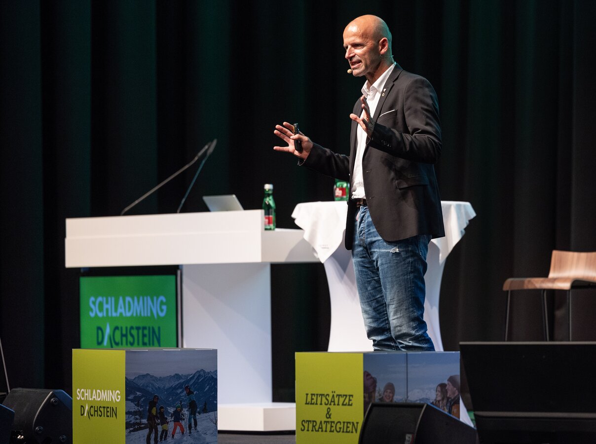 Experte Hubert Siller ging in seinem Vortrag auf die großen Herausforderungen im Destinationsmanagement ein: “Eine erfolgreiche Zukunft wird geprägt sein vom Kampf um die Begehrlichkeit der Gäste, einer möglichst hohen Akzeptanz des Tourismus bei den Einheimischen sowie einem klaren Grundverständnis über die wichtigsten Zukunftsfragen. Der Next-Level-Prozess der Region Schladming-Dachstein, den ich in den letzten Monaten begleiten durfte, ist ein sehr guter Weg, diese Aufgaben gemeinsam zu bewältigen.”