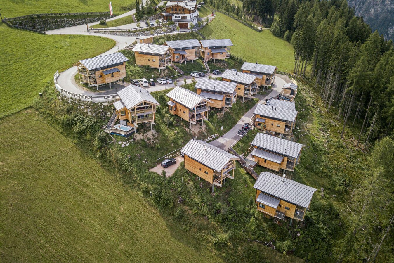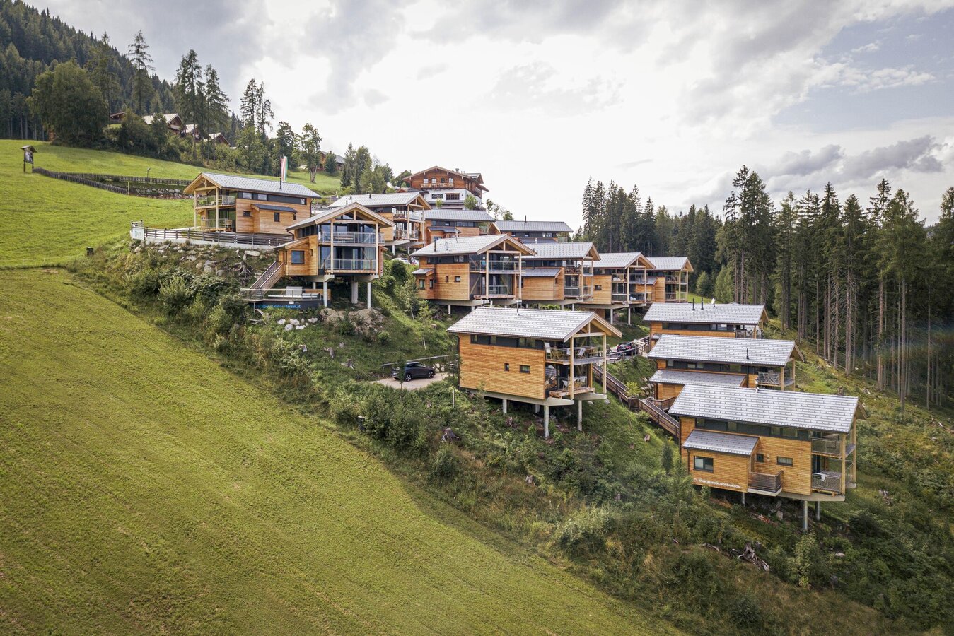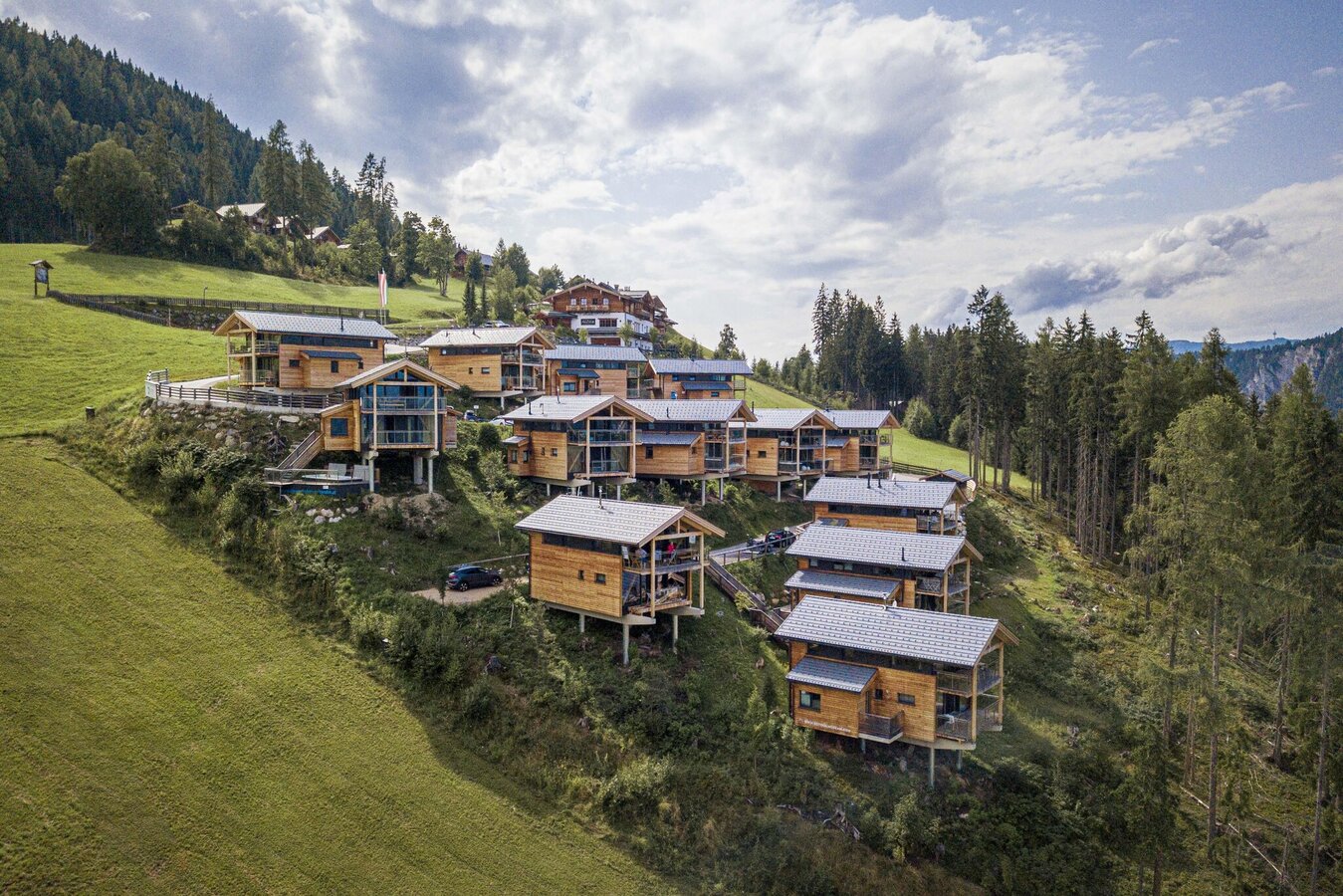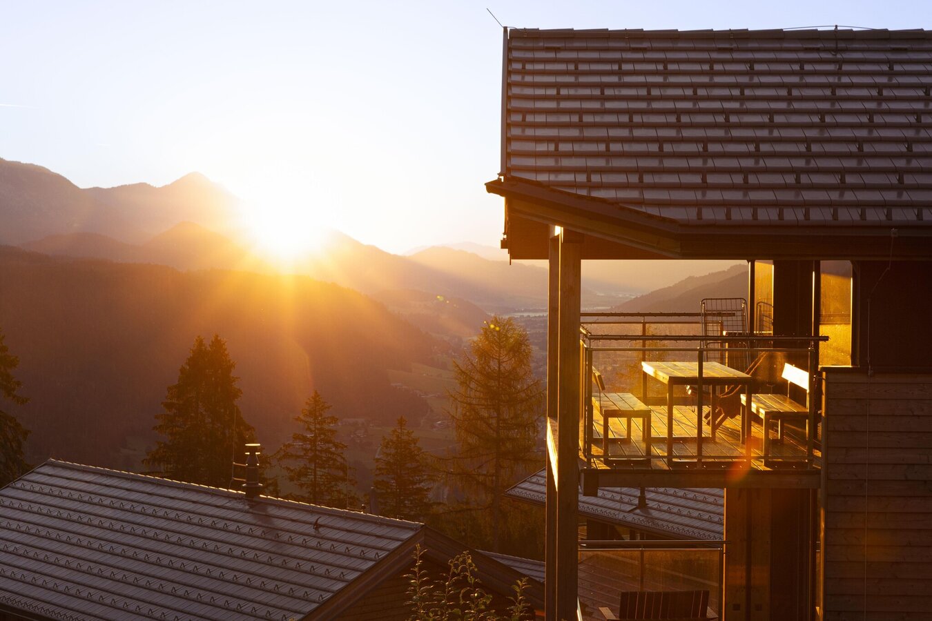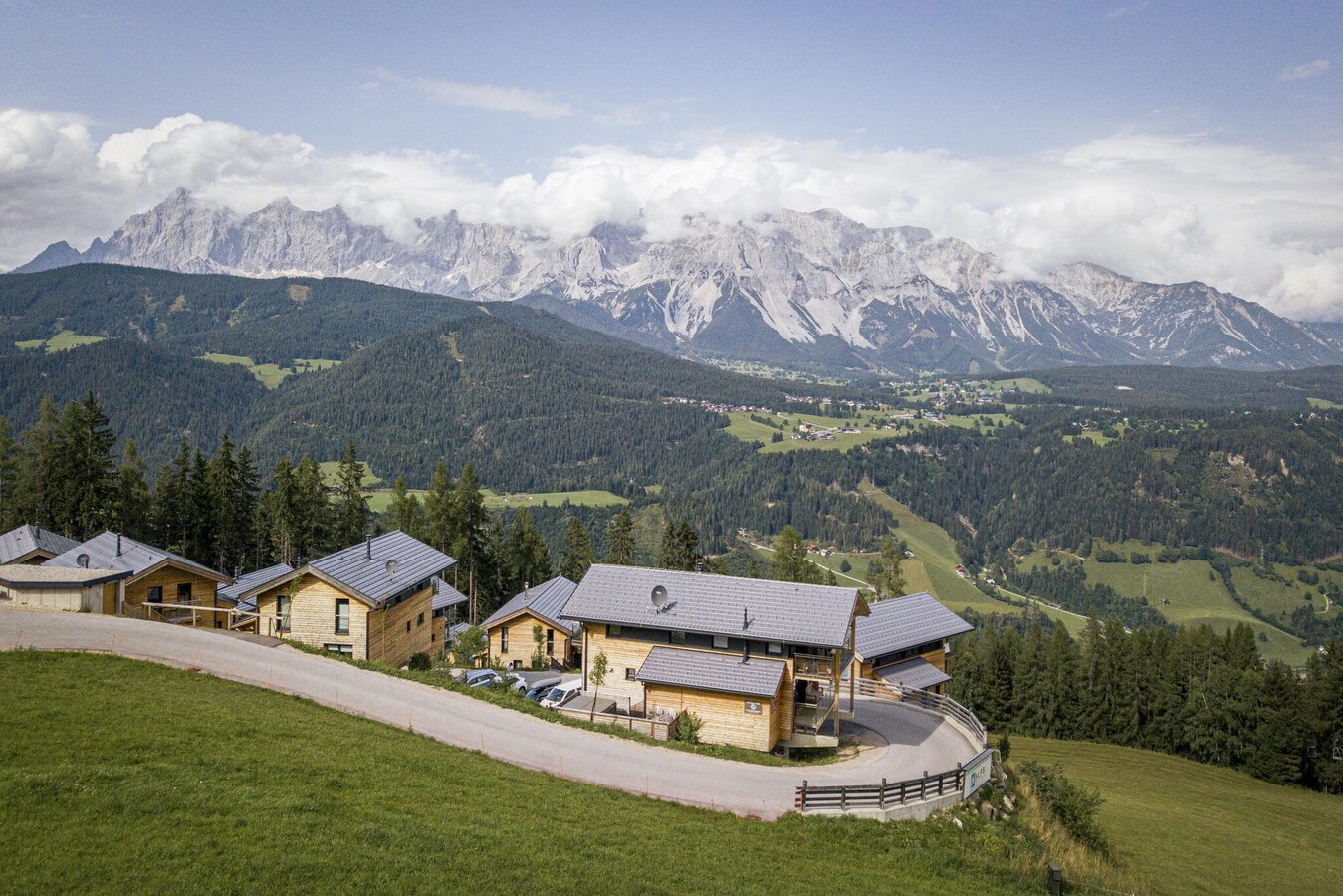 The chalets have private balconies from which you can enjoy the view of the surrounding mountains and down into the Enns Valley.
