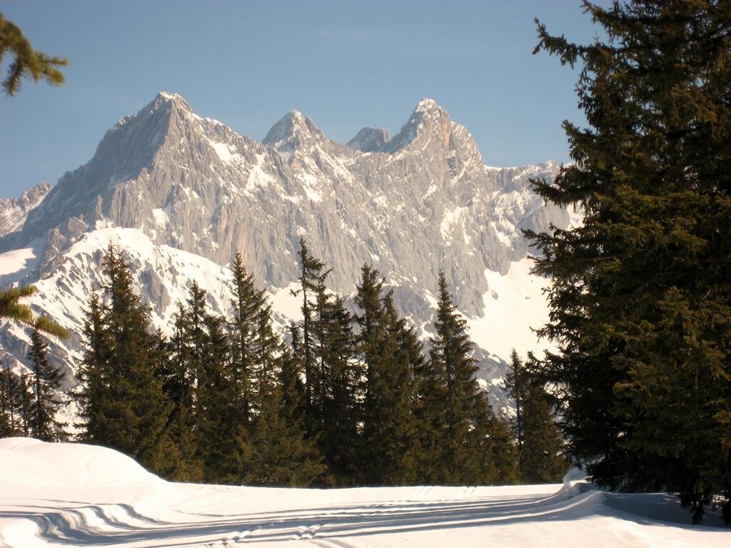 A warm welcome to the holiday paradise Ramsau am Dachstein, at the 3*** Pension Alpenglühn! We are looking forward to making your valuable holidays unforgettable and as pleasant as possible. Our comfortable Pension with family-friendly atmosphere is situated in beautifully quiet and sunny location with great views to the Dachstein mountains, ideal for your summer as well as winter activities. In winter, the cross-country trails and the winter walking paths are directly passing by our house. For all those who can’t get enough, or for romantics, there is the night cross-country trail in the Ramsau Ort stadium, lit up every evening until 21.00 h and reachable within 5 minutes. The bus stop, from where you get to Kali’s Adventure Ski Runs and to the ski amadé area with its interlinked 4 mountains Hauser Kaibling, Planai, Hochwurzen, and Reiteralm, is only 2 - 3 minutes by foot away. The ski lift “Bergkristall” and the local ski school are very close and can be reached by foot. Your ski gear can be safely stored in our ski storage room, and there is an extra ski-service room available. At the Pension Alpenglühn, there are only family members looking after the well-being of the guests. Furthermore, the newly renovated Pension Alpenglühn has nine comfortable double rooms and three spacious family rooms with separate bedrooms. You stay in friendly, bright rooms decorated with care, all of which have a balcony, a private bathroom with shower/WC, and Sat TV. After an active and sportive day out, you are welcome to relax on your sunny balcony with breathtaking views to the Dachstein mountains. WLAN is available free of charge in the house. In the morning, we prepare a rich breakfast for you, with jams, different kinds of mueslis, crispy home-baked bread, homemade cakes, and fresh, regional products. In winter as well as in summer, you choose from a varied 3-course set menu. In summer, the Schladming Dachstein region turns into Styria’s premium hiking area with fascinating panoramas and varied possibilities for excursions, as well as endless leisure offers including relaxing, exercising, recharging your batteries, making you forget about the day-to-day life for a while. Winter tourism does not have to be noisy - pleasurable carving turns on the ski slopes, classic parallel cross-country skiing and rhythmic skating along the groomed trails, easy-going walking along snowy winter walking paths in fresh, clear air - the idyllic sunny plateau of Ramsau is perfect and enchants holidaymakers over and over again. We look forward to your stay at our Pension Alpenglühn in Ramsau am Dachstein! Yours, Stocker family