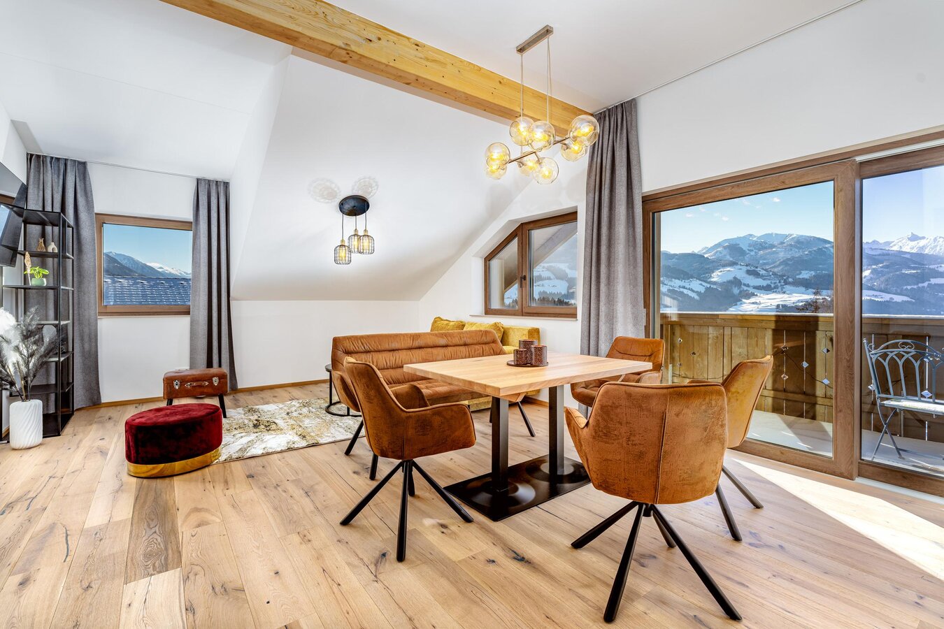 Our modern and cosy flats with lots of charm offer you an unforgettable holiday experience in the Schladming-Dachstein region. All four flats boast breathtaking views and have been designed with great attention to detail. They have a fully equipped kitchen, comfortable box-spring beds, cosy bathrooms and a private balcony. The top facilities also include a lift, a ski and bike room and a large garden that invites you to relax. Sufficient car parking spaces are available. Here with us you can feel completely at ease and enjoy the beauty of the region.