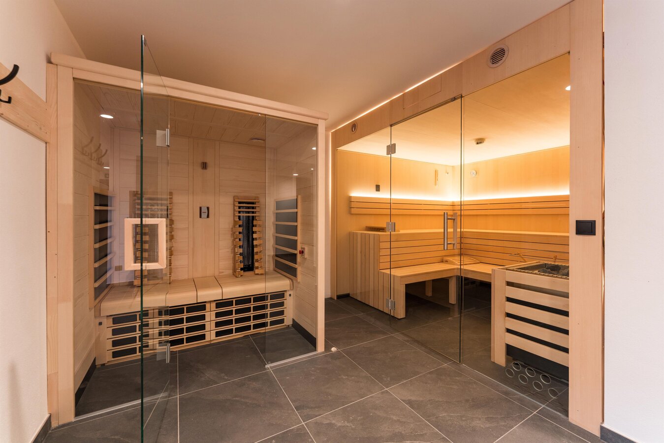Our exceptional design gently surrounds you as you recharge, unwind, and fully enjoy the moment. Our exclusive wellness and fitness facilities meet even the highest expectations – with relaxing saunas, both Finnish and infrared, and a modern fitness area for discerning guests. Here, you’ll find everything you need for pure relaxation and active enjoyment.