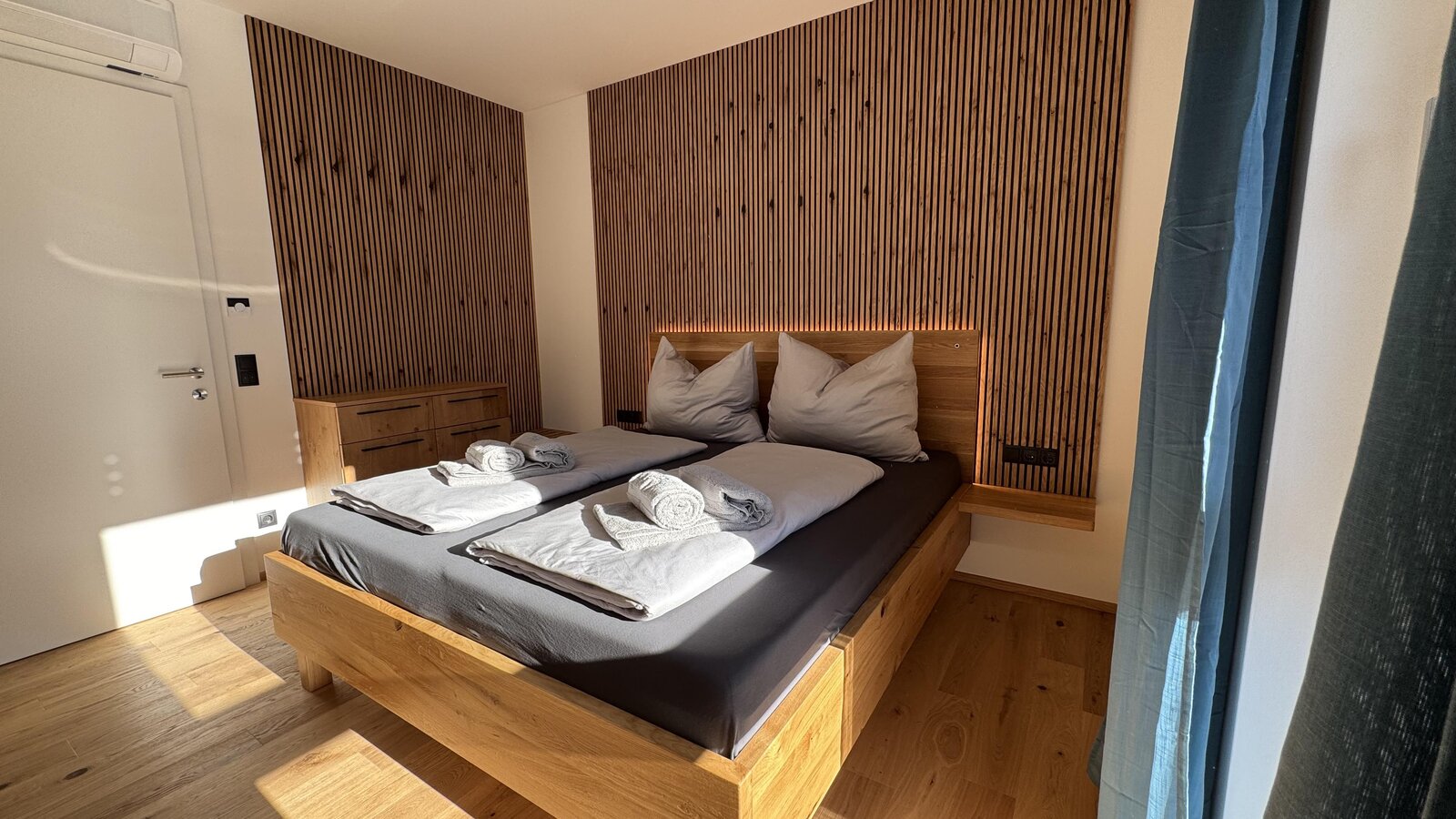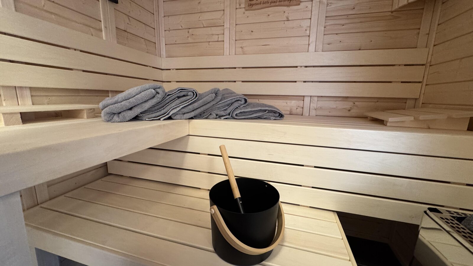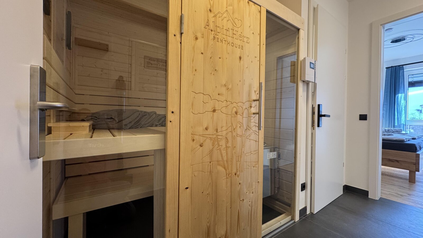 Two separate bedrooms with king-size box-spring beds, a spacious kitchen, and a private sauna.