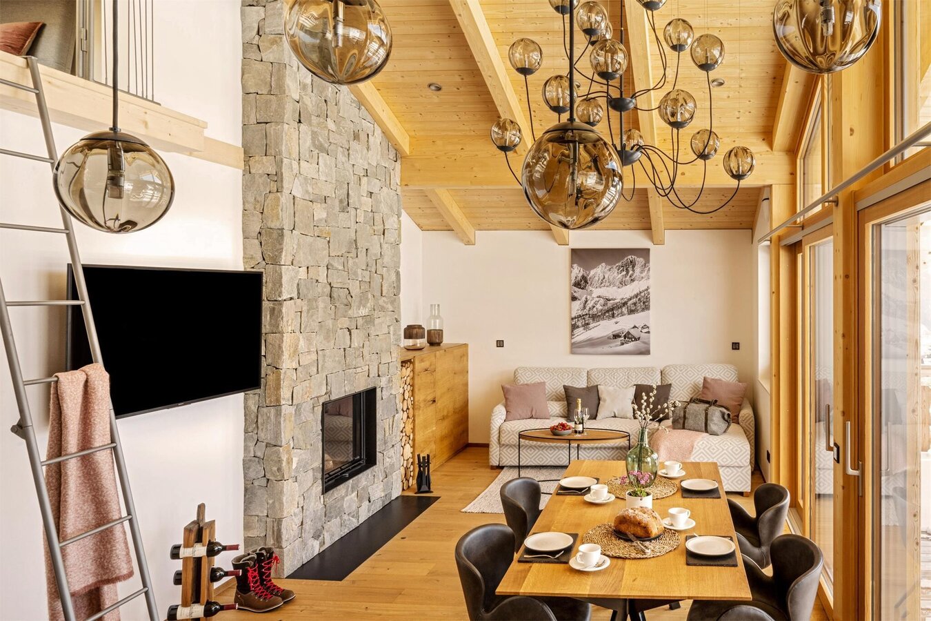 The Alpine Residence Dachsteinperle is a direct starting point for numerous mountain tours, via ferrates and hiking routes, mountain bike and e-bike trails, is located directly at the cross-country ski run and next to the Drachenlifte, perfect for ski starters and kid bob sledging or summer field go-cart runs. In 5 – 15 minutes by car you reach all 5 major ski mountains of the region as Planai, Reiteralm, Hauser Kaibling, Hochwurzen, Rittisberg and as well the Dachstein Glacier.