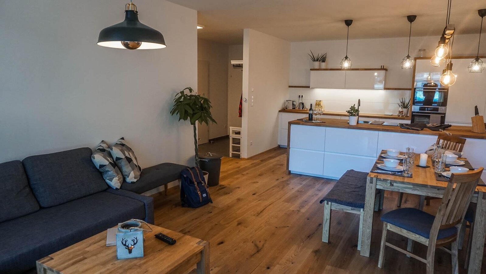 The new and very exclusive apartment house is in the middle of the beautiful village of Gröbming, which offers the best infrastructure. The accommodation and furnishings are brand new. Large exclusive kitchen with natural wood worktop and modern appliances. Spacious bathroom with rain shower. The accommodation is located in the middle of the Dachstein-Schladming holiday region. Only a few minutes away from the well-known ski areas (Hauser Kaibling, Planai or Reiteralm). There are also countless hiking opportunities in the Gröbming area in the middle of the mountains. In the town of Gröbming there are many shops (bakers, grocery stores, sporting goods stores). Good infrastructure: ski bus in front of the front door.