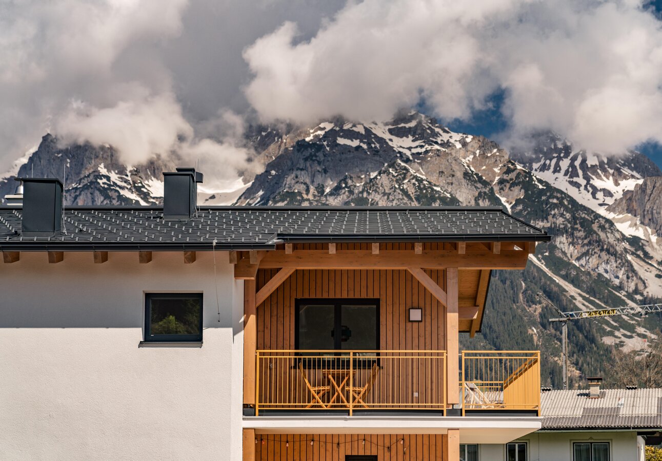 Do you want to sip your morning coffee with a view of the Dachstein and enjoy a glass of wine on the terrace in the evening, let yourself be warmly welcomed by our newly built apartment Alpengefühl, which meets every needs. With 3 bedrooms with double beds, a panoramic living room with pull-out sofas, dining area and well-equipped kitchen (cooking island, dishwasher, fridge, microwave, toaster, coffee maker), as well as two bathrooms with WC and another toilet, we offer comfortable accommodation for 8 people on 100 m2. The apartment has a flat-screen satellite TV and WLAN. Two private covered parking spaces are available for our guests. Ski and hiking equipment as well as ski suits can be stored in a separate room in the basement (direct access to the parking spaces). Towels and bed linen are provided.