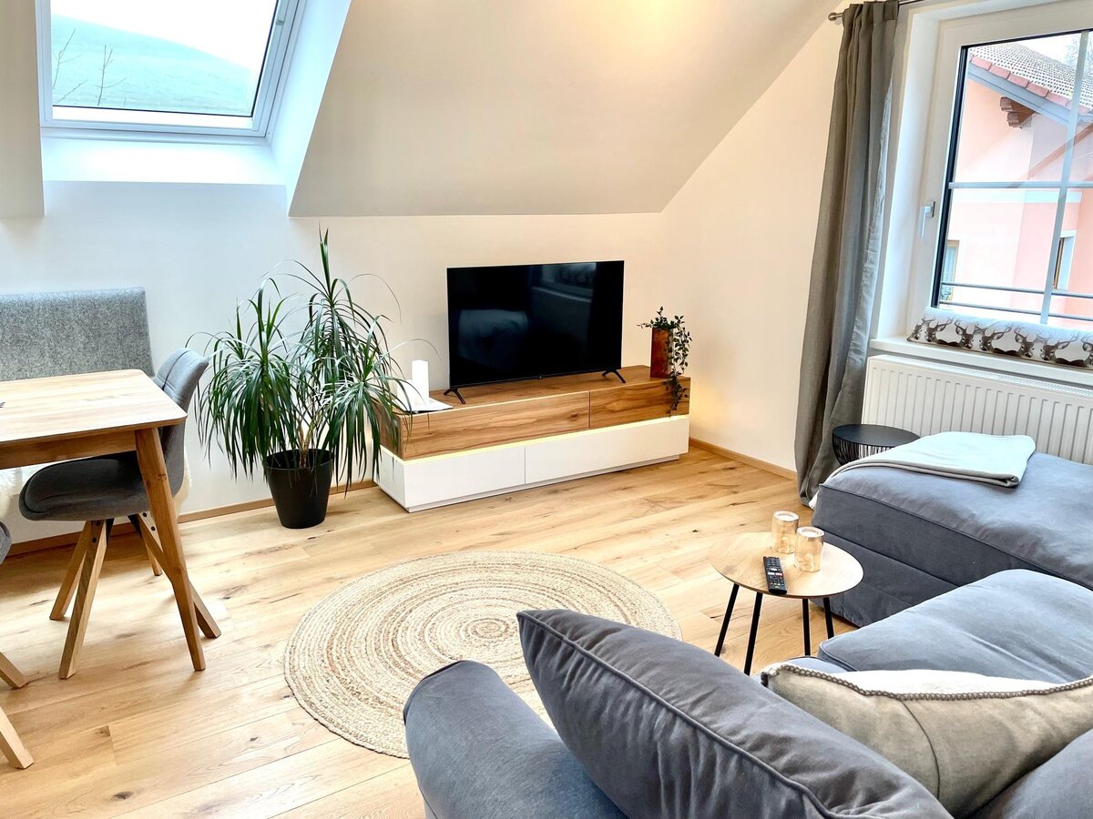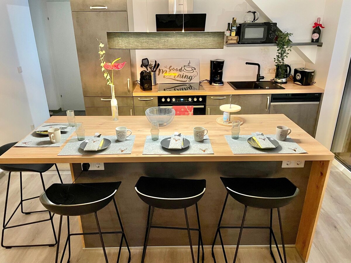 Our small cozy house is located 300m from the town center, so the baker, supermarket, hairdresser, cafés, restaurants, etc. are all within a few minutes' walk. The apartment is located on the first floor of our two-family house.