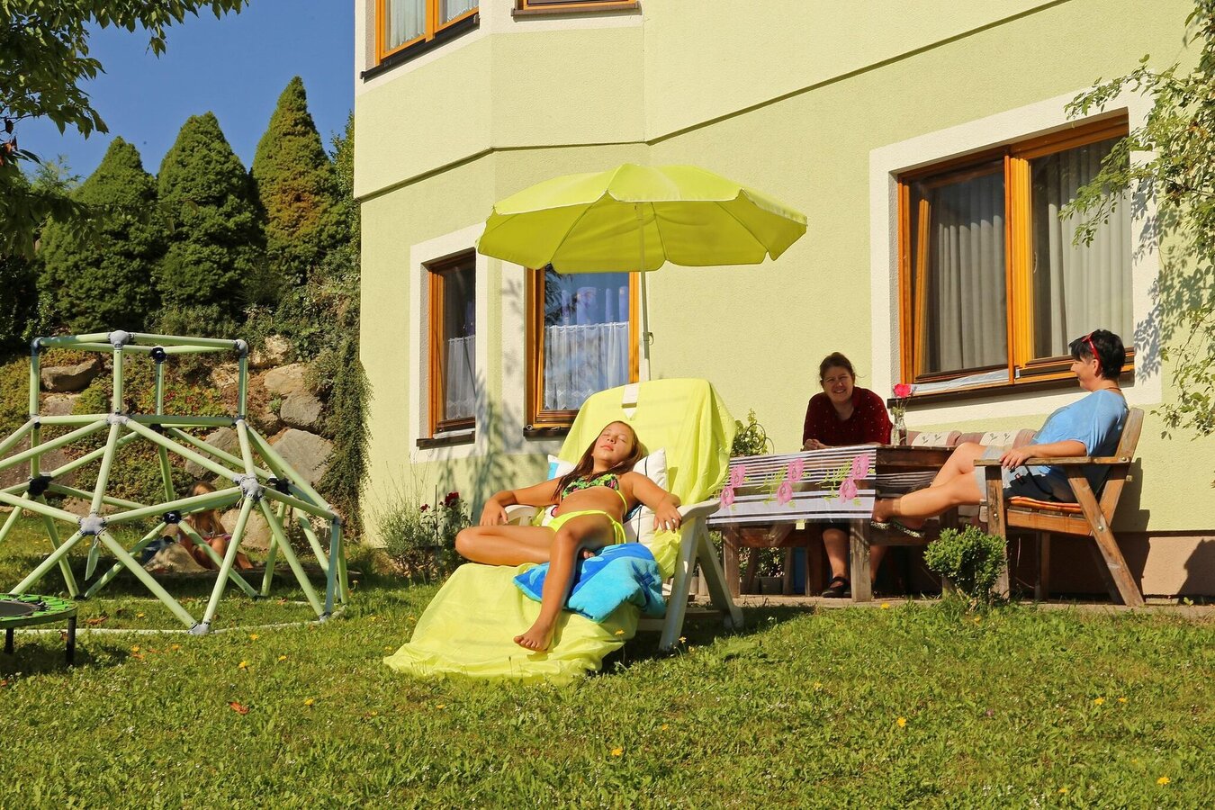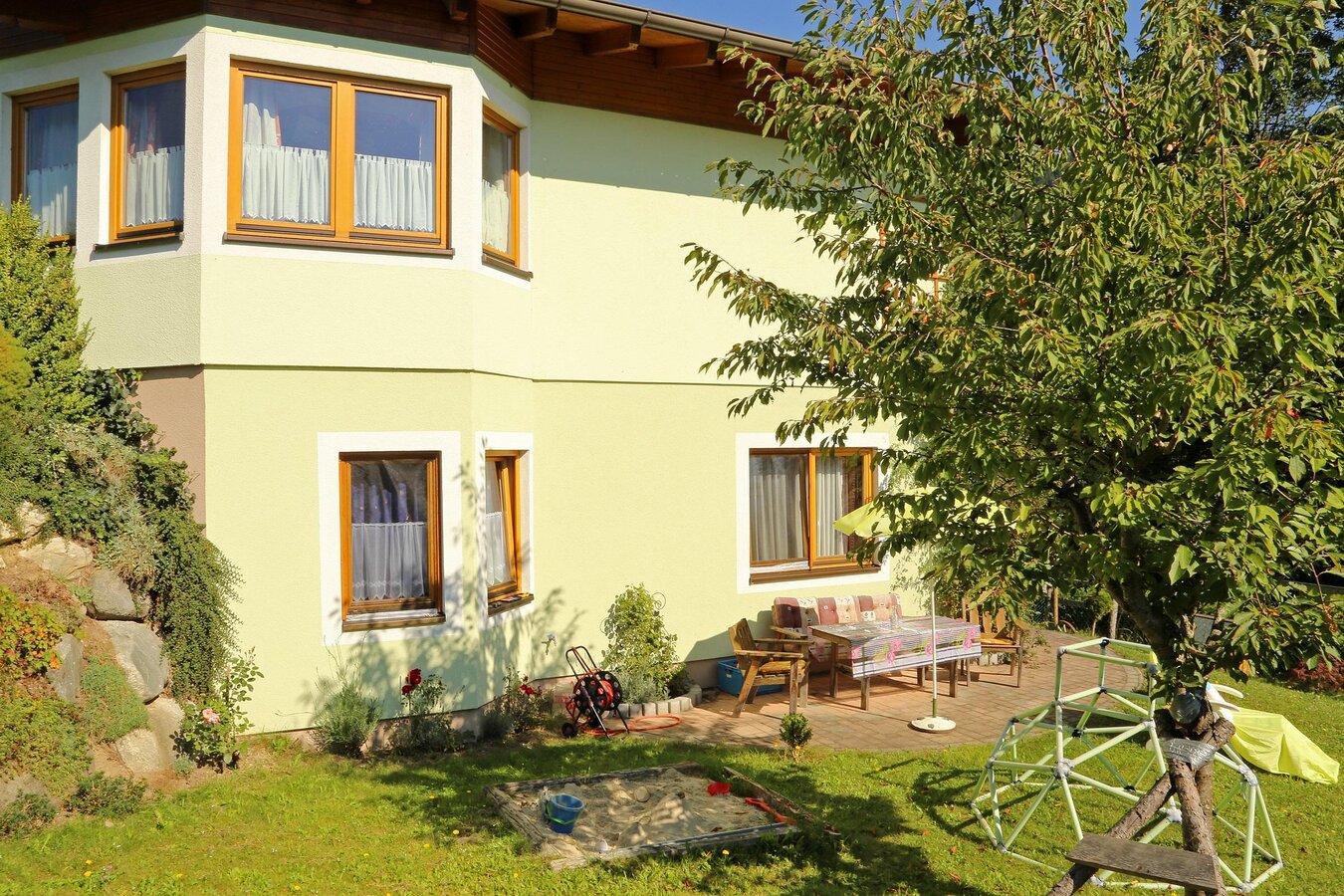 In the Gasthof Sonnenhügel (approx. 50 m away) you can have breakfast for € 12 / person, there is also dinner (menu selection) for € 15 / person. Children get a discount! Pre-registration is requested!