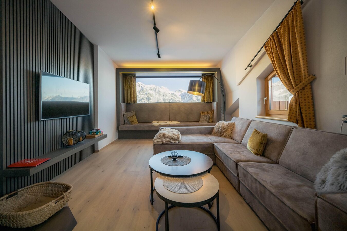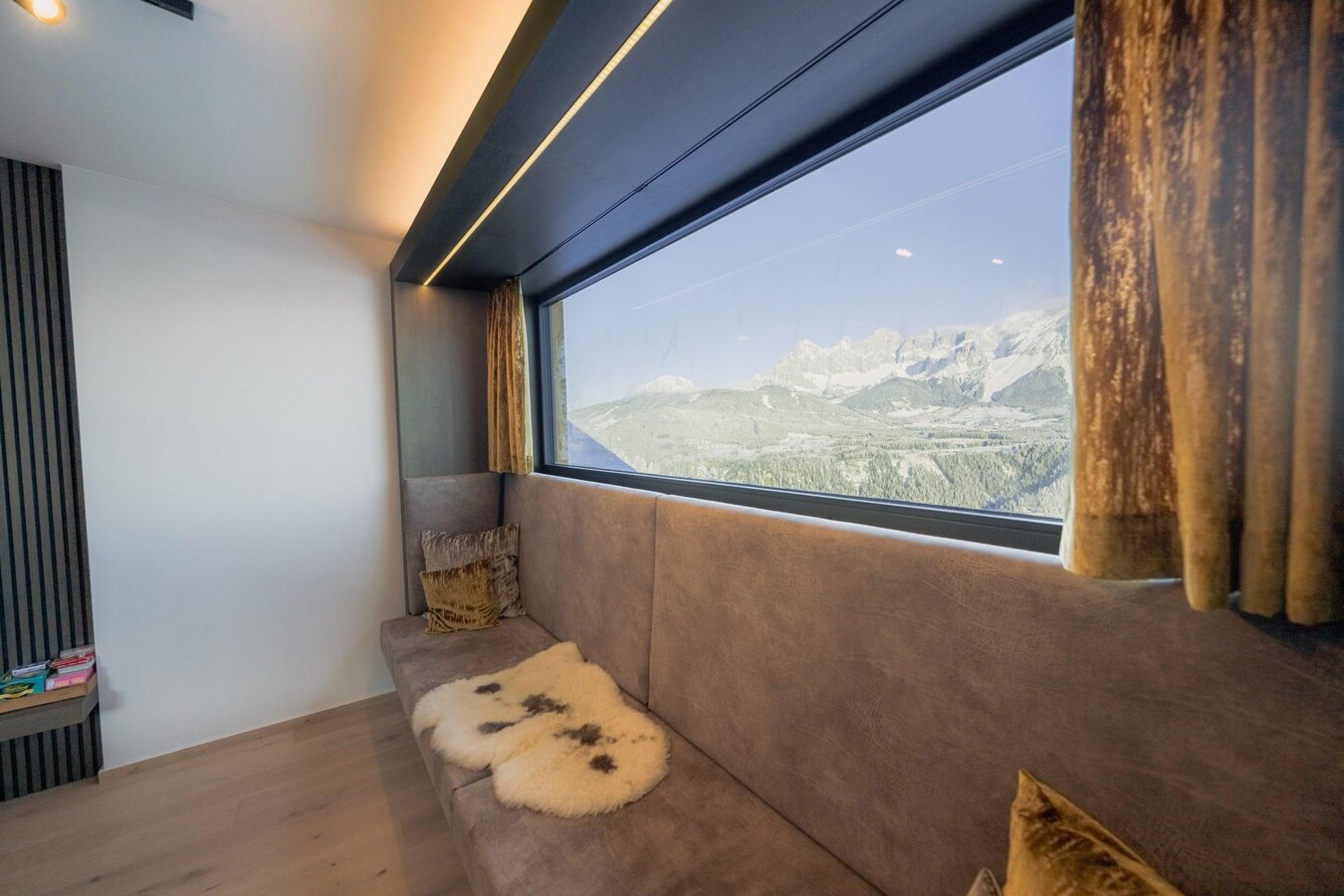 In one of the most beautiful spots, in 1.200 m altitude, above the Ennstal valley, situated quietly near the forest, with an extraordinary view to the "Dachstein", there is our new "Apartmenthouse Hutegger" with 4 apartments, built with much wood which makes it very cosy and comfortable. Send your car on holiday an start directly from your apartment to the slopes. In the heart of the 4-mountain-ski-connection, you have the possibility to leave the house, put on your skies and enjoy the Planai, Hochwurzen, Reiteralm or Hauser Kaibling skimountains, the night-skiing or the 8 km toboggan-run are easily accessible. But not only the wintertime here is beautiful. Also in summer you have innumerable possibilities for trekking, climbing, mountain-biking, guided tours, moutain-lakes and waterfalls and an alpine flora incredible. Dinner in "Berghof" (ca. 300 m) possible.
