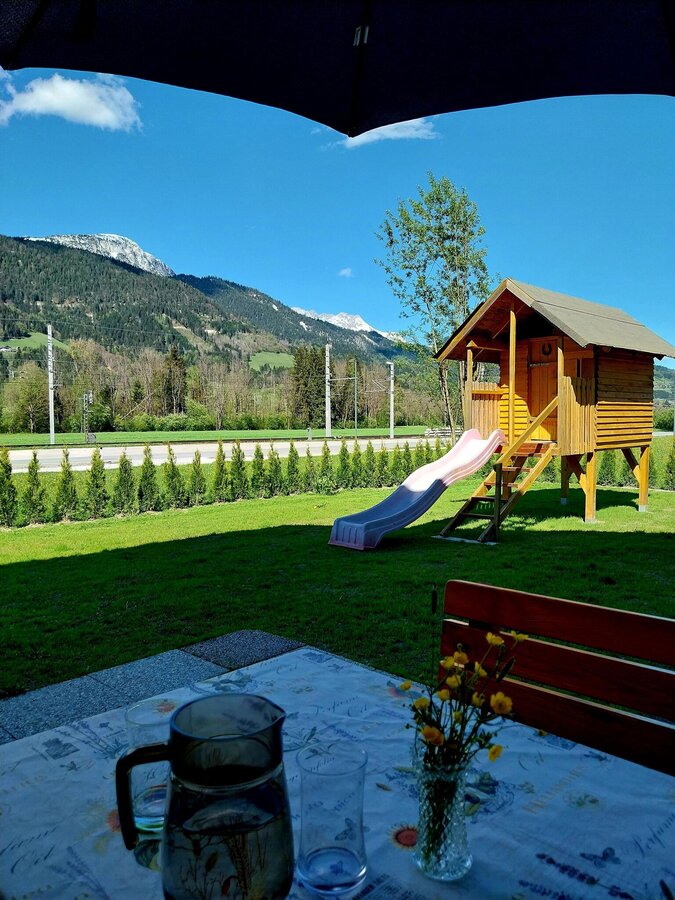 Our cozy and lovingly furnished apartment is located in the middle of the beautiful Schladming-Dachstein holiday region. Our house is quietly located in the Höhenfeld district. Enjoy the silence in the garden away from the B320 and still find shops and restaurants as well as excursion destinations in the immediate vicinity. It's just a few minutes' drive from here. Here it is easy to unwind and enjoy the wonderful view of the Ennstal. There are 2 ski bus stops about 150 meters away. There is also a new coin-operated laundry room in the same area.
