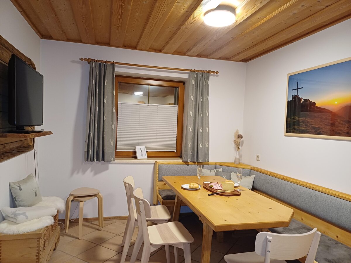 Our tiny, but cosy appartement house is situated just three minutes walk to the Planai gondola. It is equipped with 2 appartements (65m2) for 5 people each. Every holiday appartement has 2 double bed rooms and one single bed room, also a living kitchen, a toilet and a bath room. There is a ski boot dryer in the basement and a space for the ski.