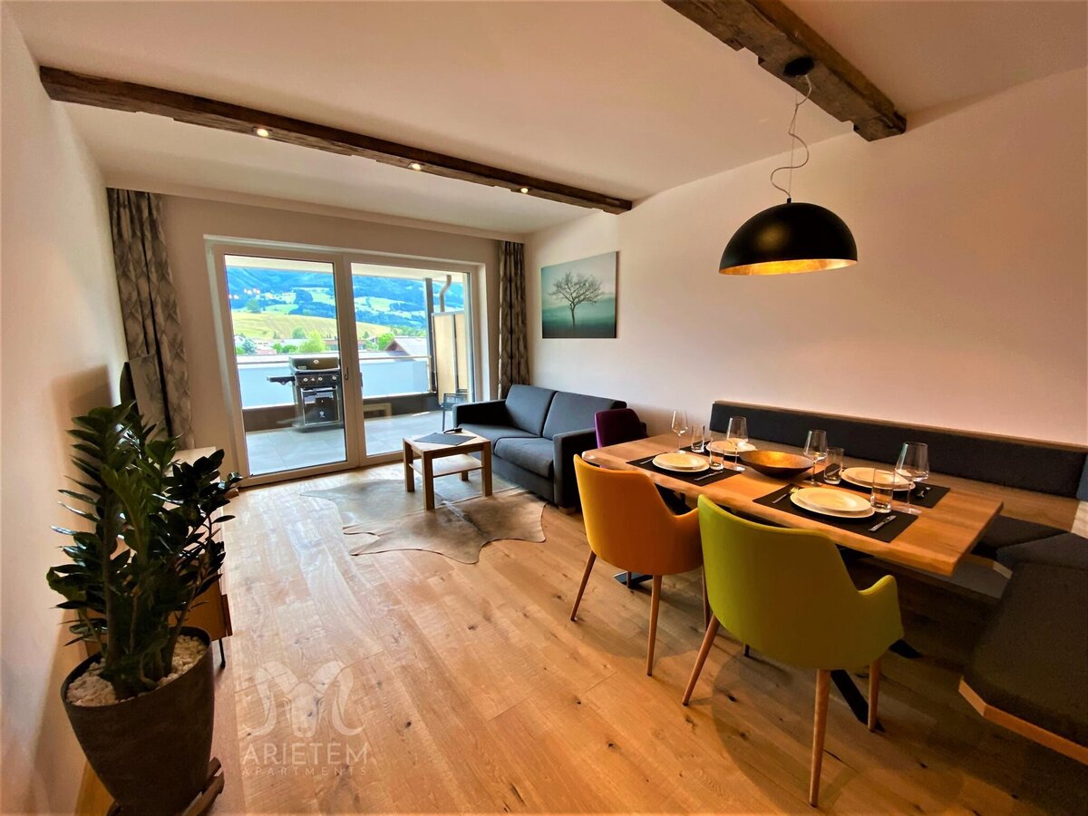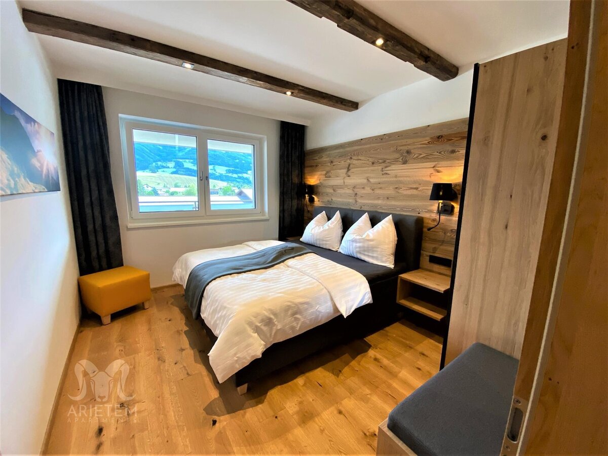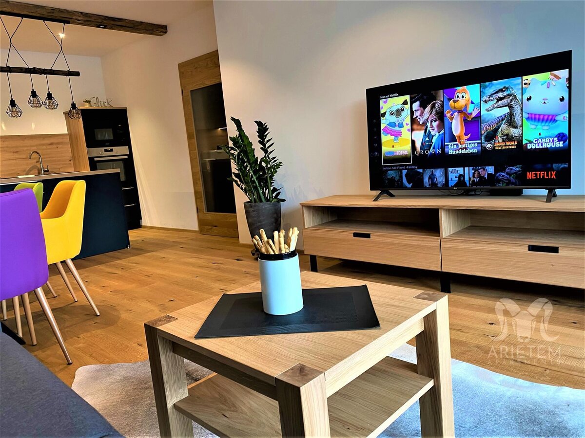 The high-quality furnished "Arietem Apartment" from myNests in the heart of Gröbming offers space for up to 6 people. With its rustic modern charm, the apartment provides a cozy, relaxing atmosphere with 2 bedrooms (double beds) and a sofa bed in the living area. You can enjoy a beautiful view of the mountains on the generous terrace where you can spend warm summer evenings barbecuing. The apartment features two bedrooms and a fully equipped kitchen with a dishwasher, oven, coffee machine, and microwave. A flat-screen TV including Netflix and Canal+ is available.
