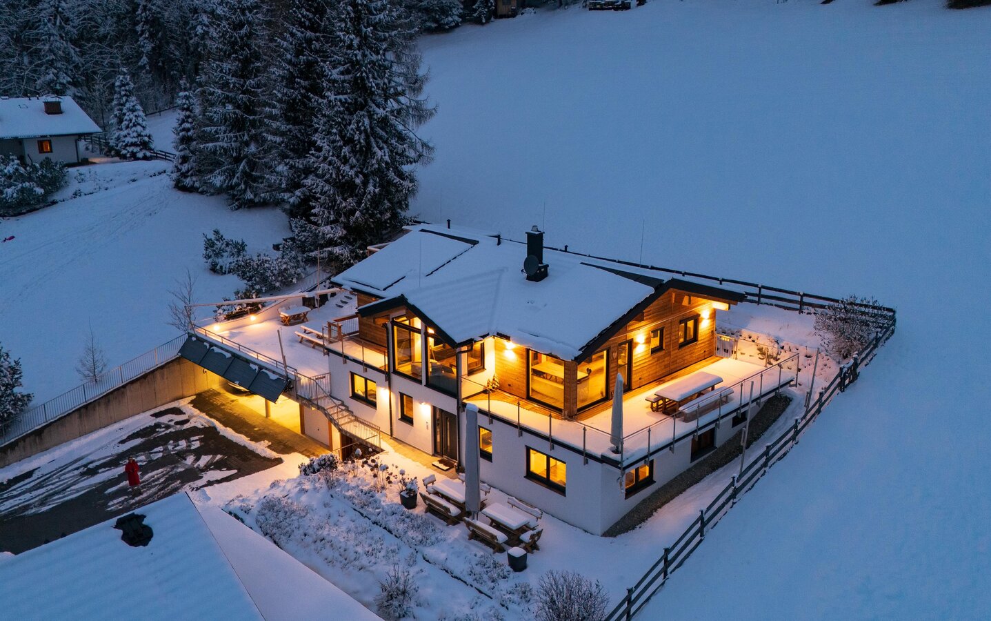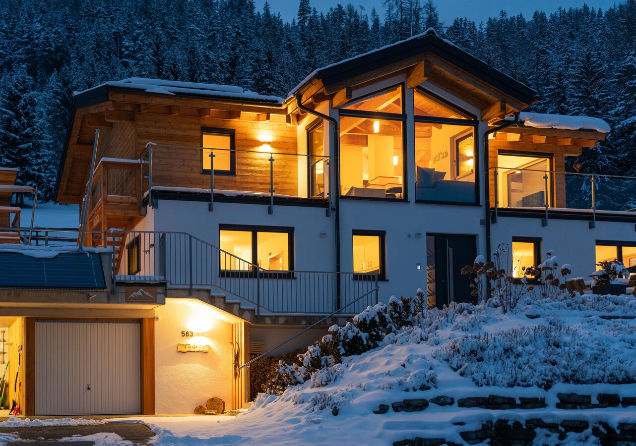 From the house, varied hiking trails and mountain bike routes start directly – without needing a car, just step outside and go or ride. Via ferratas are nearby, as well as numerous alpine mountain and high tours. In winter, perfectly groomed cross-country ski trails lead through the snowy landscape right from the house, and ski areas and ski touring routes are quickly accessible.