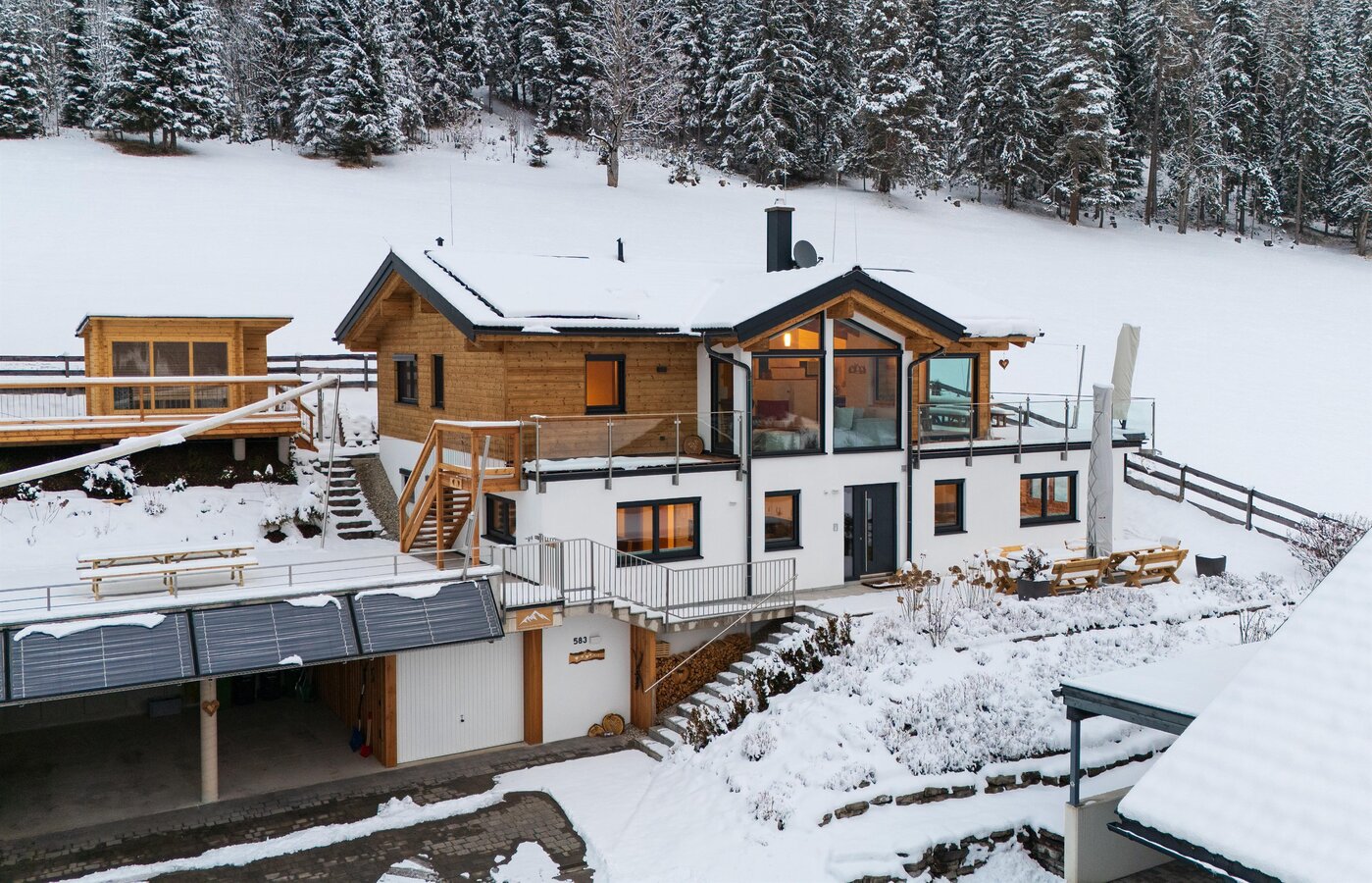 A heated ski room with a shoe dryer, as well as secure storage options for bicycles and mountain bikes, ensure additional comfort even after sporty days.