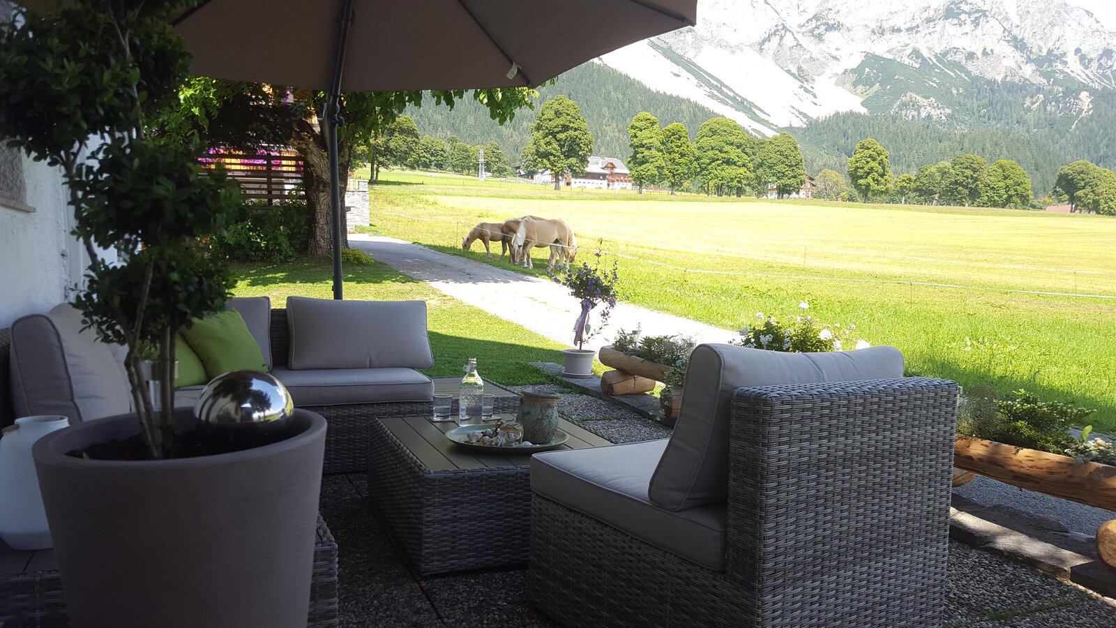 ... Stylishly renovated apartments and double rooms with a harmonious ambience. offers friendly atmosphere in a quiet but central and lots of sun! On the 3004m high Dachstein foot Boasting panoramic views of the Dachstein Massif and the Schladming Tauern mountains. Directly at the mountain cab: : Cross-country trail entrance (180km !!!) : Skilifte- for beginners, intermediate and advanced Countryside and toboggan runs Romantic sleigh rides : Restaurants, ski school, sports shops and evening entertainment in In close proximity to.