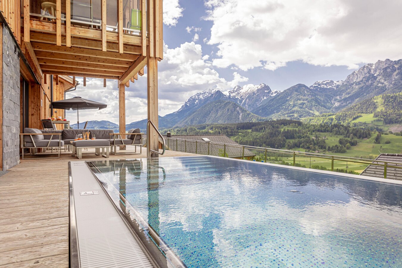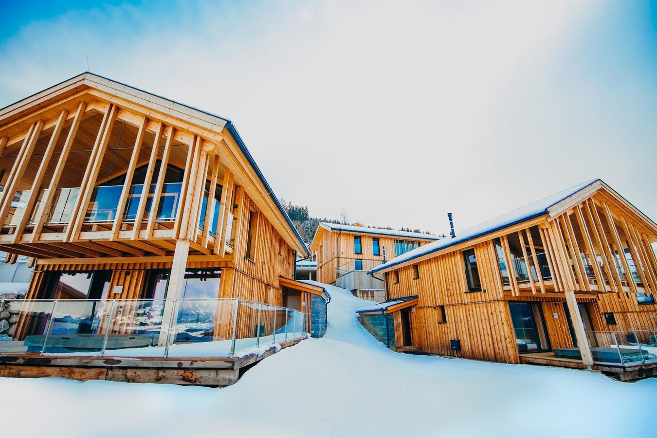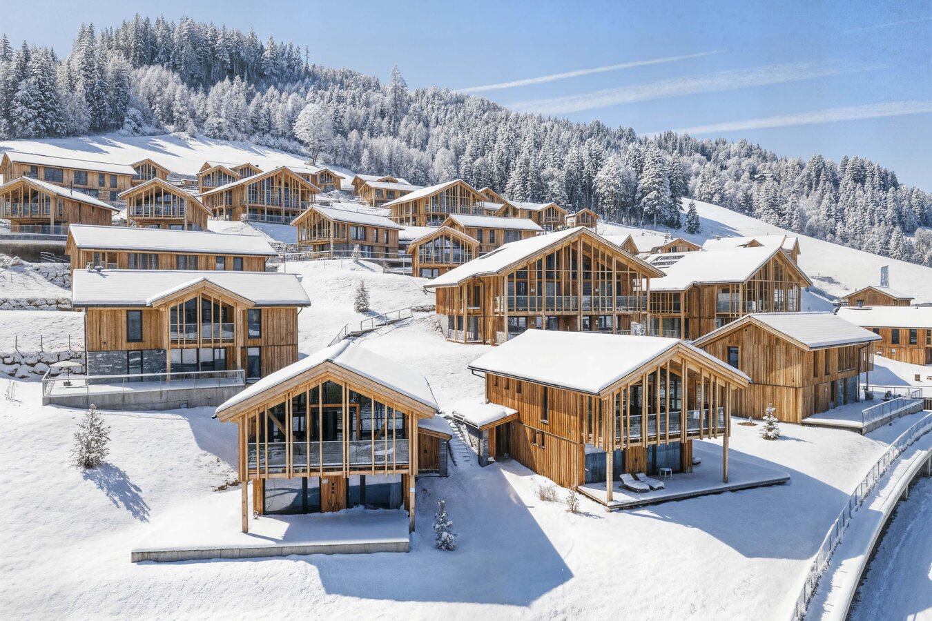 The alpine-style apartment suites and chalets have between 62 – 145 m² and have access to a private covered terrace and covered parking spaces. All units offer an exclusive private spar area with steam sauna, finnish sauna and whirlpool or outdoor pool.