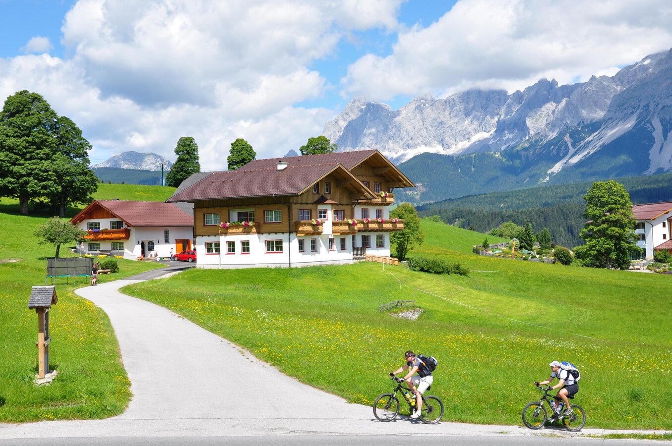 Our family-run organic guesthouse Aussacher is located at an altitude of 1,100 m in sunny Rohrmoos above Schladming – surrounded by a stunning mountain panorama, directly on the ski slope and right in the hiking area.