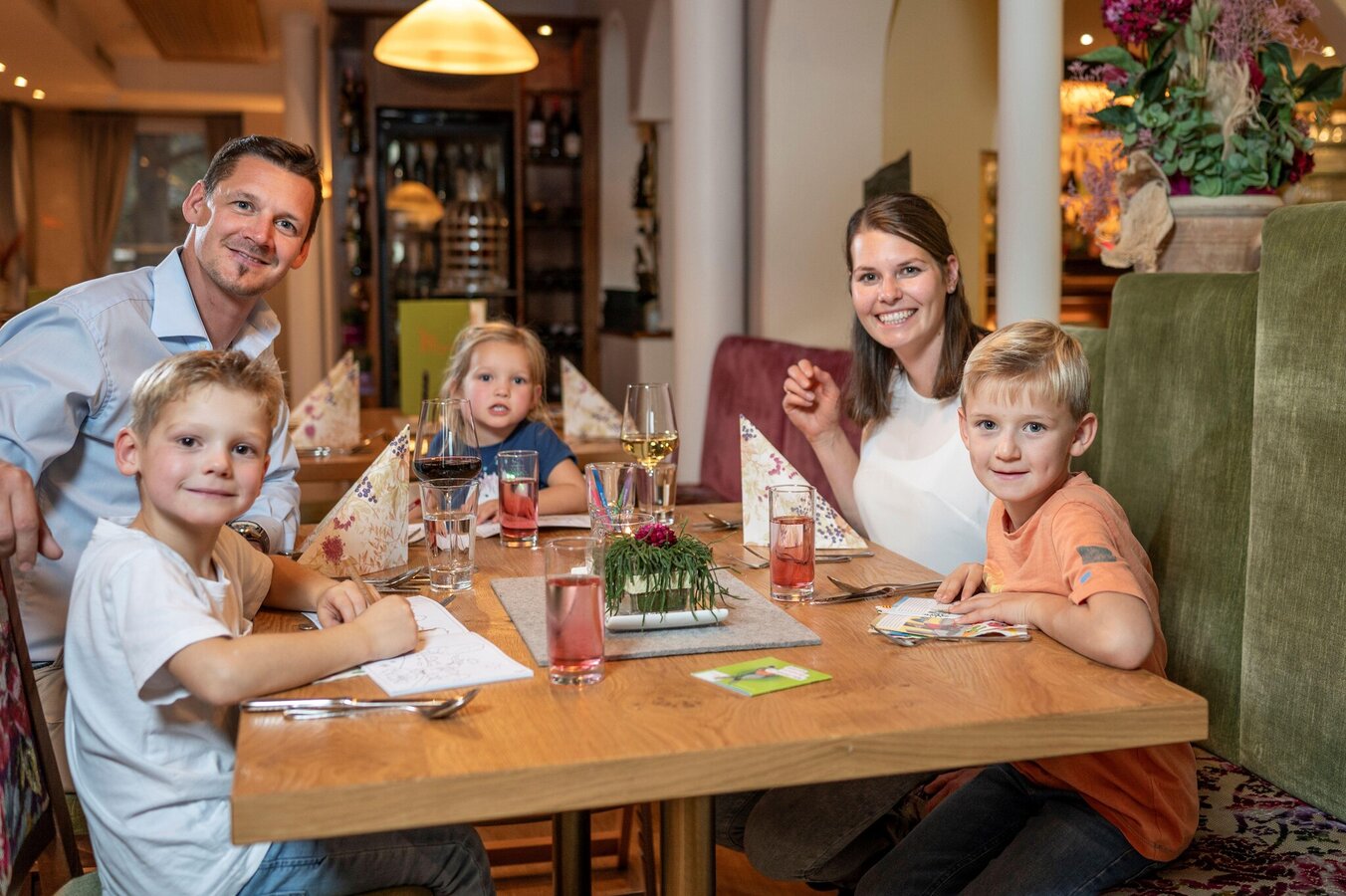 Fresh ambiance, family atmosphere - a warm welcome to the small but fine children’s hotel. The hotel impresses with top-notch childcare in the large hotel children's world and in the 5,000m² hotel garden with playground and large lawn for playing. Simply a feel-good place: Spacious hotel wellness oasis, very nice garden with terrace, indoor pool, massage & cosmetics, family textile sauna. And in addition, a culinary pampering offer with delicious four-course menus, children's buffet, children's juice bar. Comfortable accommodation in our family apartments, suites, or studios, of course with TV and internet. Pure relaxation in the Krummholzstüberl with fireplace. Free bike rental, large play garden with go-kart track, giant sand area, and much more. Bliem Ranch with donkeys, rabbits, sheep, piglets, chickens, and guinea pigs. Hiking and activity program for the whole family and exciting activities for the kids. Great family offers throughout the region, most of which are free with the Summer Card.