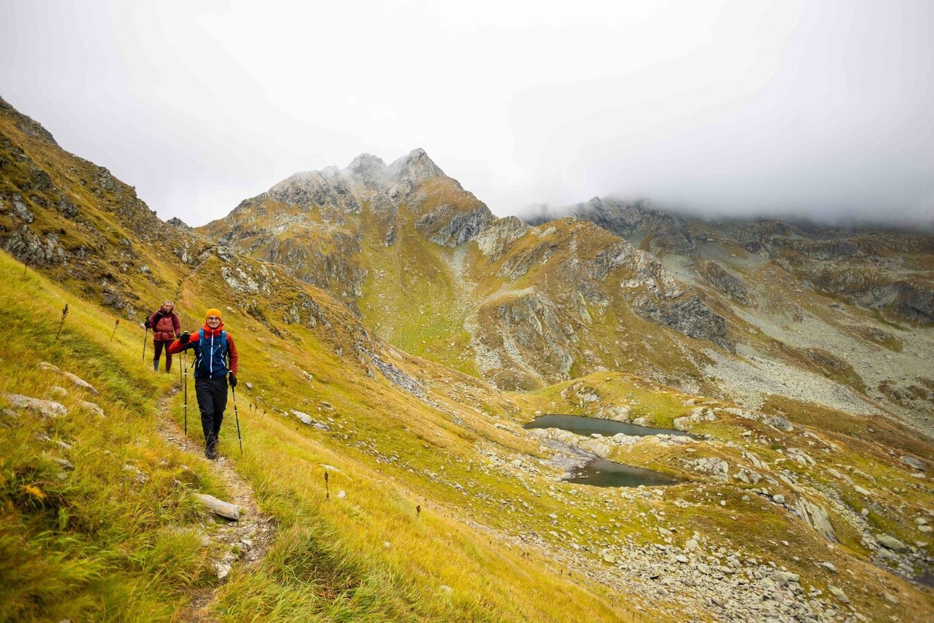 Changes in weather patterns, quick falls in temperature, thunderstorms, wind, fog and snow are some of the dangers that can be encountered on a hiking tour. Hosts of alpine huts and mountain refuges have a lot of experience in the mountains and can give good advice about weather and the trails. Poor equipment, overestimation of one's own capabilities, carelessness, poor personal constitution and/or wrong judgement can lead to critical situations. In case of thunderstorms: avoid summits, ridges and steel ropes.