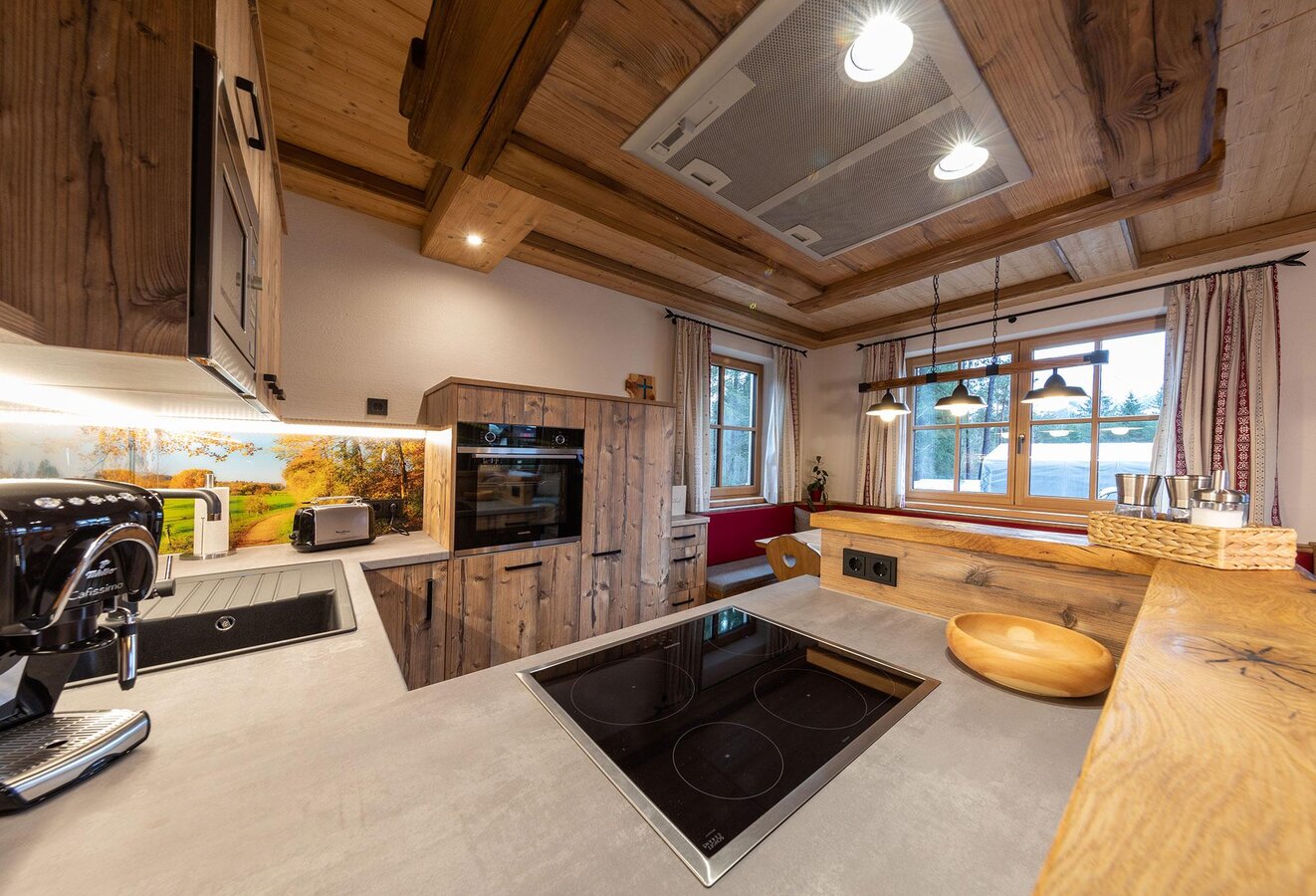 The open-plan living area with a fully equipped kitchen and a cozy tiled stove invites you to enjoy memorable moments with family or friends. For pure relaxation, the private sauna house with its own shower and WC is the perfect place. During the warmer months, the spacious terrace and garden offer a lovely setting for barbecues, while children can enjoy the private playground, try the slackline course, play football, or splash around in the nearby stream. A stroller-friendly forest path leads to a charming Kneipp facility just a few minutes away.