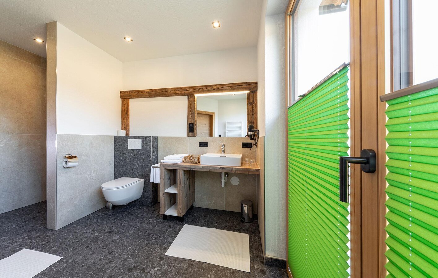 The chalet features four lovingly furnished bedrooms, three modern bathrooms, a TV in every room, free Wi-Fi, as well as a washing machine and dryer. A ski room with boot dryers is available for your winter gear. Right outside the house, you'll find a carport for two vehicles, additional parking spaces, and an EV charging station (available for a fee). The ground floor is fully accessible and barrier-free.