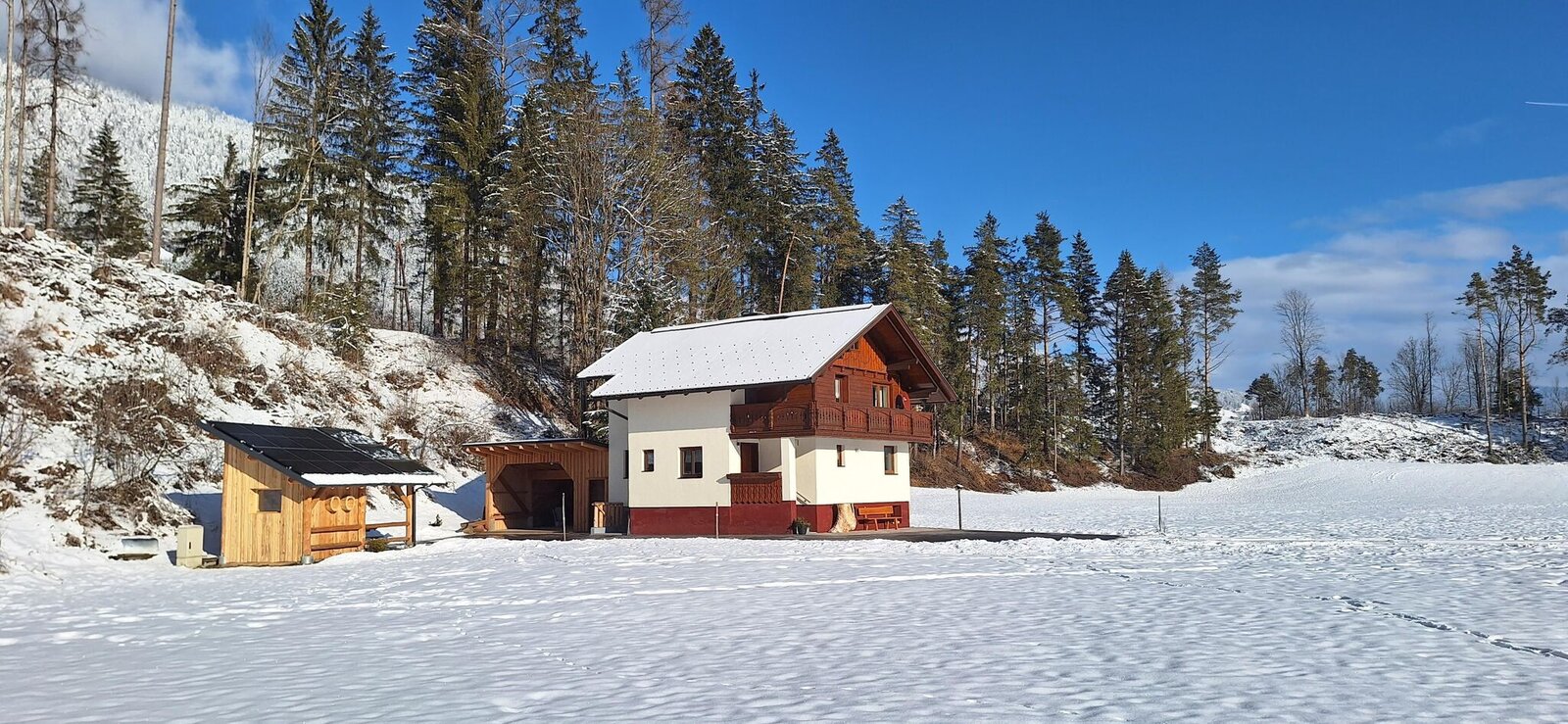 The fully equipped kitchen and the cozy living room offer all the amenities for a relaxing stay. After a day on the slopes or hiking, you can relax in the outdoor sauna or enjoy the view from the garden hut.