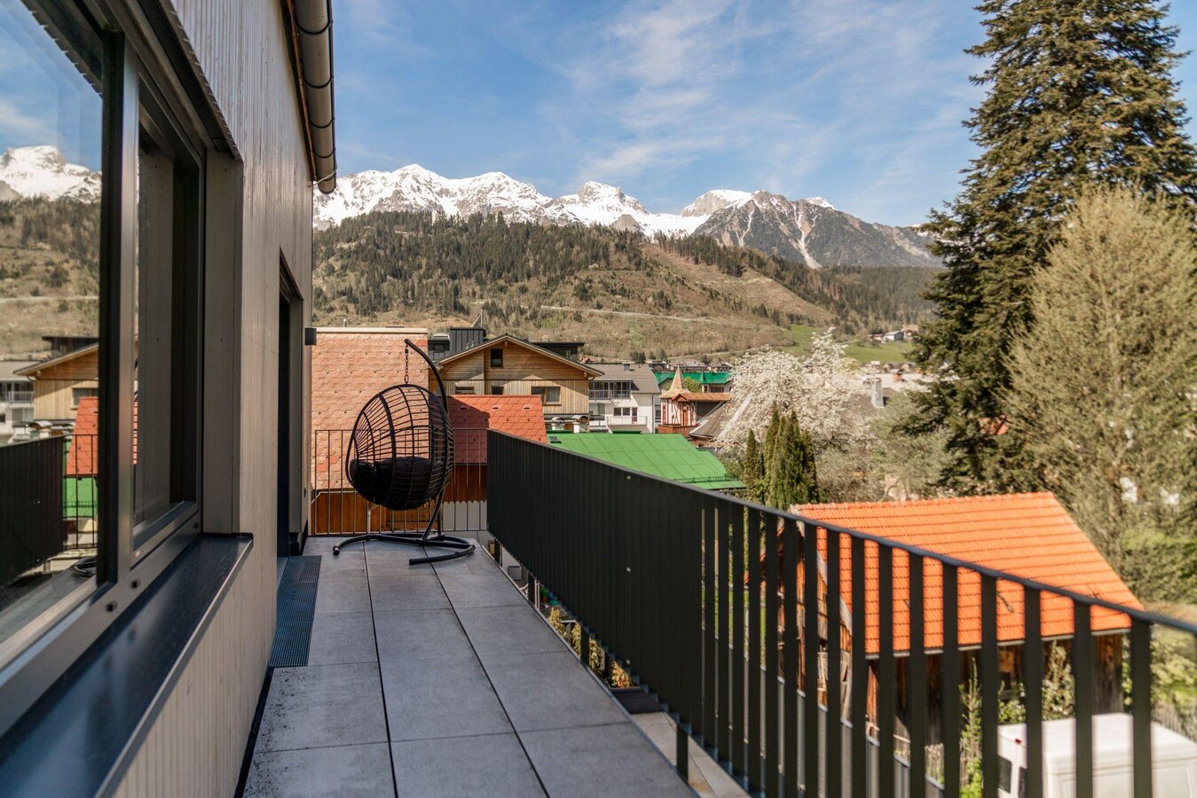 A harmonious variety of colors, high-quality designer furniture, noble and high-quality materials & wallpapers make the apartment a unique work of art that you will not find a second time in Schladming. Design with feel-good factor at the highest level! Summer and winter, the terraces to the west and east guarantee a stunning view with morning sun and sundowner effect.