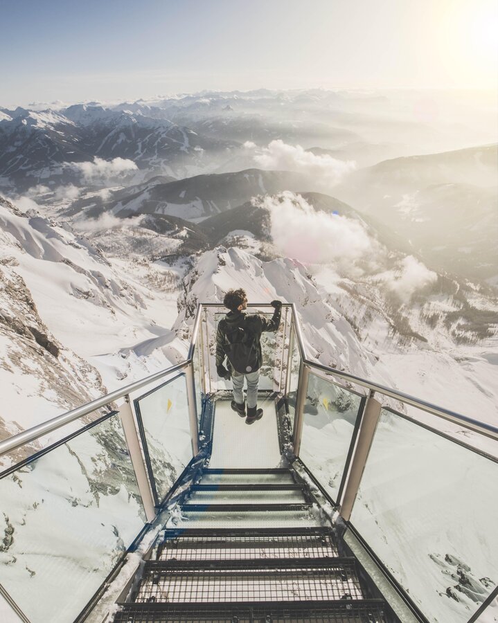 No matter how long you stay in Schladming-Dachstein - you should always make time for one thing: a visit to the Dachstein Glacier - at almost 3000 meters, the highest mountain in Styria. As you ascend in the panoramic gondola - either in the all-round glazed gondola cabin or on the airy gondola balcony - you can enjoy spectacular deep views. At an altitude of 2,700 meters at the latest, a feeling of true freedom takes hold. All attractions can be reached from the mountain station in just a few minutes. No matter whether you let your gaze wander from the Skywalk into the distance or gather your courage and climb over the suspension bridge to the stairs into nothingness: you are guaranteed to have deep and far-reaching views. The panorama extends from the mountain peaks of Austria with the Großglockner to the plains of the Czech Republic and Slovenia. Ultimately, a visit to the Ice Palace should not be missed. The sculptures, made with great attention to detail, amaze you.