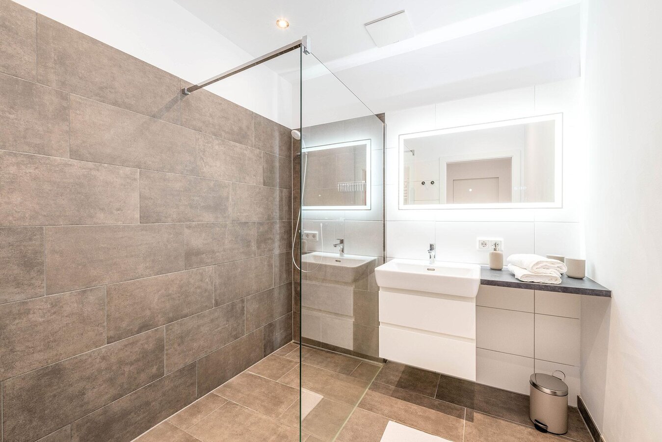 The modern, fully equipped kitchen, the bright living and dining area, and the high-quality, tastefully furnished interiors create a pleasant living atmosphere. Each apartment has a bathroom with a shower and a separate WC – ideal for a relaxing stay.
