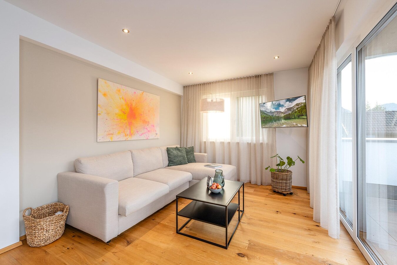 The newly constructed Three Mountains View Apartments each offer 68 m² of living comfort and are the ideal choice for families, couples, or friends who want to fully enjoy the Schladming-Dachstein region. The apartments feature a bedroom with a double bed and an additional sofa bed in the living area. Depending on the apartment, there is space for several people.