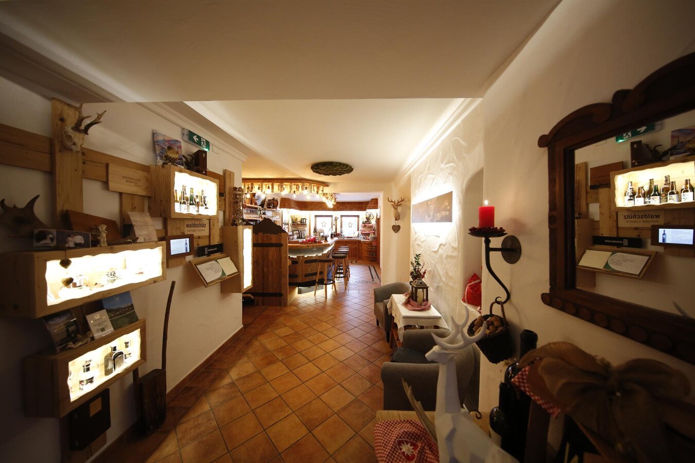 Our familiy owned business is approximately 300 m (1000 ft) from the gondala at the base of the Hauser Kaibling which you can walk to, without problems. A bus stop, across the road from our inn gives you availability to travel from town to town. (Schladming, Gröbming, Liezen, ...) For the outdoor enthusiast during the summer, there are many other sports activities available (swimming, hiking, golf, tennis, roller blading and a soccer field) is within walking distance. After a busy day, you have the option to relax in our beautiful sauna or in your tastefully decorated room with private bathrooms. You must not forget our good cooking which consists of a large breakfast buffet and traditional austrian suppers. It would also be a pleasure to accomodate motorcycle enthusiasts in our inn. We are biker friendly! For those people who want to enjoy the night life, we offer in-house bar with good music for all ages.