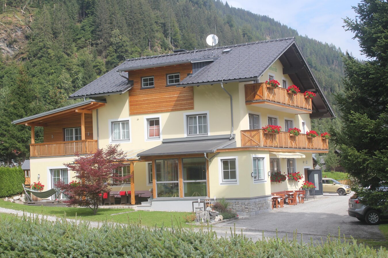 Welcome to the Family and Hiking Pension Purkhardt in Donnersbachwald, an idyllic side valley in the Schladming-Dachstein holiday region, away from noise and hustle. Centrally located, Pension Purkhardt is the ideal starting point for your winter or summer vacation, whether you are traveling alone or with family and friends. Our shuttle service takes you directly to the Riesneralm lift or the ski school. Additionally, a ski run leads right to our doorstep – Holiday without a car!
