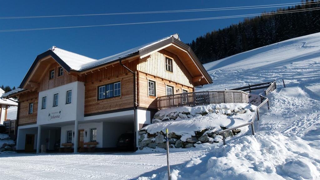 Ferienhaus Johanna is situated in calm location at Fastenberg/Schladming on 1050 m and there is enouth place for 10 people. The world cup downhill slope is nearly and makes possible to enter the slopes directly from the apartment. Good skiers can reach the Planai cable car station on skies in approx. 10 minutes. For beginners and small children we suggest to use the car to come to Planai station. The restaurant "Holzhackerstube" is near the house. It's possible to book roll-service. Ferienhaus Johanna is perfect for families who want to spend their holidays calm and lonesome but not far away from the slopes! You can reach the house from Schladming in approx 5 minutes by car. Please note that snow chains for the car are necessary! Check-In: 3 pm, Check-Out: 9 am