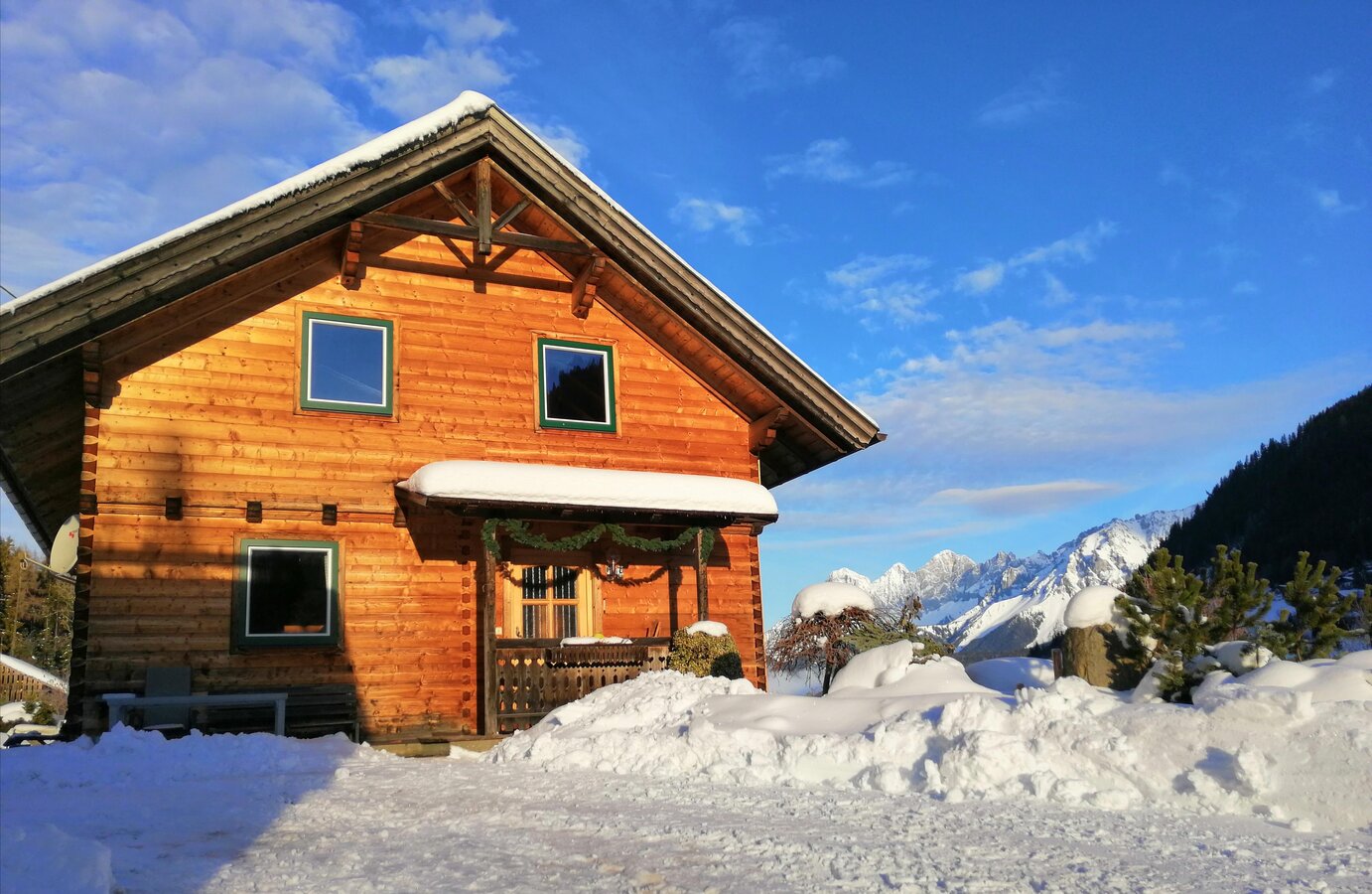 In our newly renovated farmhouse , we have a lovingly furnished a holiday apartment in country house style with all comfort, with a big heart for Children. You expect 160m² comfort. 3 double bedrooms and 1sleepcouch in the livingroom, a kitchen and a gallerey with a tv. You have a own sauna and a free WiFi. The ski and hiking bus stops right here, so your car have Holiday too. In the summer we have staggered prices, so you are be able to enjoy the vacation also in a smaller circle.