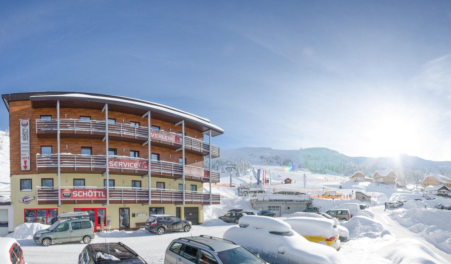 IRDNING-DONNERSBACHTAL/PLANNERALM. Right next to the ski lifts on Planneralm. Our house includes 18 apartments from 15 to 76 m2 (for 1 to 8 people), consisting partly of an entrance hall, kitchen-living room, bath room/toilet, up to 3 bedrooms for a maximum of 8 persons. Some with a balcony. They are comfortably equipped with electric stove, refrigerator, coffee machine, Nespresso coffee machine, Satellite TV, W-Lan, microwave, partly with dishwasher, generous tableware utensils, linens and towels. Additionally we have a lounge area for all guests with a pool table, table football an a table tennis plate. A Sports shop, small grocery store with fresh bread service tobacco and newspaper sale are also located in the house. (only open during the winter season). Including electricity, bed linen, final cleaning fee, tourism tax