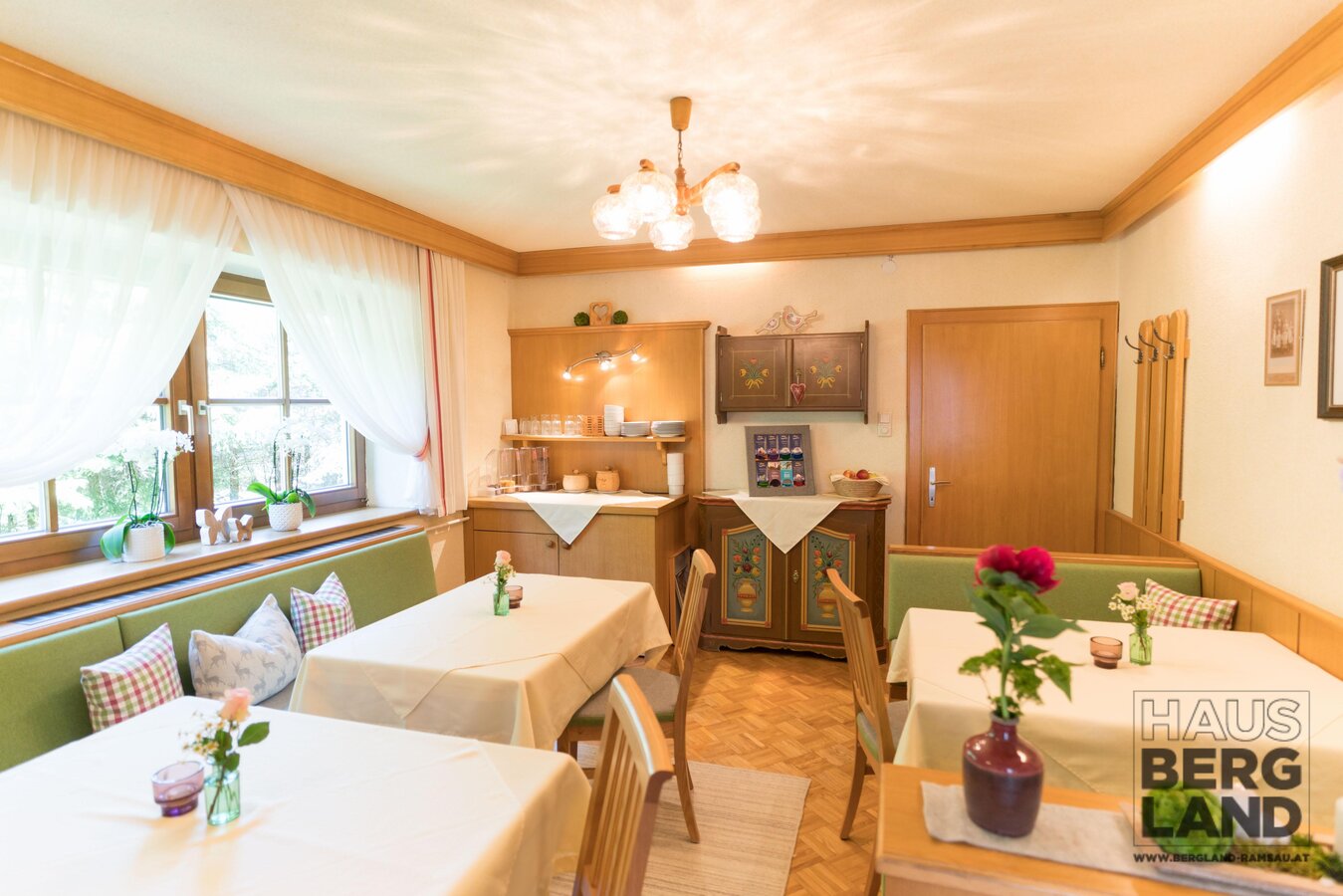 Our Haus Bergland lies directly in the centre of the Ramsau am Dachstein holiday region. Come and stay with us in one of Austria’s most beautiful areas. With the breath-taking Dachstein mountains on the doorstep, the blue skies above, and the lush green meadows beneath your feet, yours will be a dream holiday in Ramsau am Dachstein. Peppered with many rustic mountain huts waiting for you to stop by, Ramsau’s alpine pastures at 1,700 m and the Dachstein glacier at 2,700 m offer numerous via ferratas in summer, and, in winter, cross-country trails, ski runs, ski touring and winter walks. Nearby, you can find Kali’s ski runs, cross-country trails, walking paths, bus and ski-bus stops, ski schools, the public indoor pool with sauna facilities, shops, banks, and the doctor’s surgery, making us the perfect place for your base camp. Also very close to Haus Bergland is Ramsau’s cross-country stadium, which is the ideal starting point for the large network of trails. All rooms have a south-facing balcony, giving you plenty of sunlight. In front of the house are private parking spaces and a bike room. In the mornings, a delightful breakfast table in the cosy common room awaits you. The Ramsau plateau at 1,200 metres offers a large selection of walking paths, mountain-bike tours, Nordic-walking routes, cross-country trails, snowshoeing, and ski tours. Stop by Ramsau Beach, a swimming lake that also has an e-motocross park, a high-ropes course, and a summer toboggan run on the Rittisberg. For all those who love festivals and cultural events, there are many to choose from in Ramsau am Dachstein and the entire Schladming-Dachstein region. Your hosts, the Schrempf family, are looking forward to seeing you at the Frühstückspension Bergland B & B.