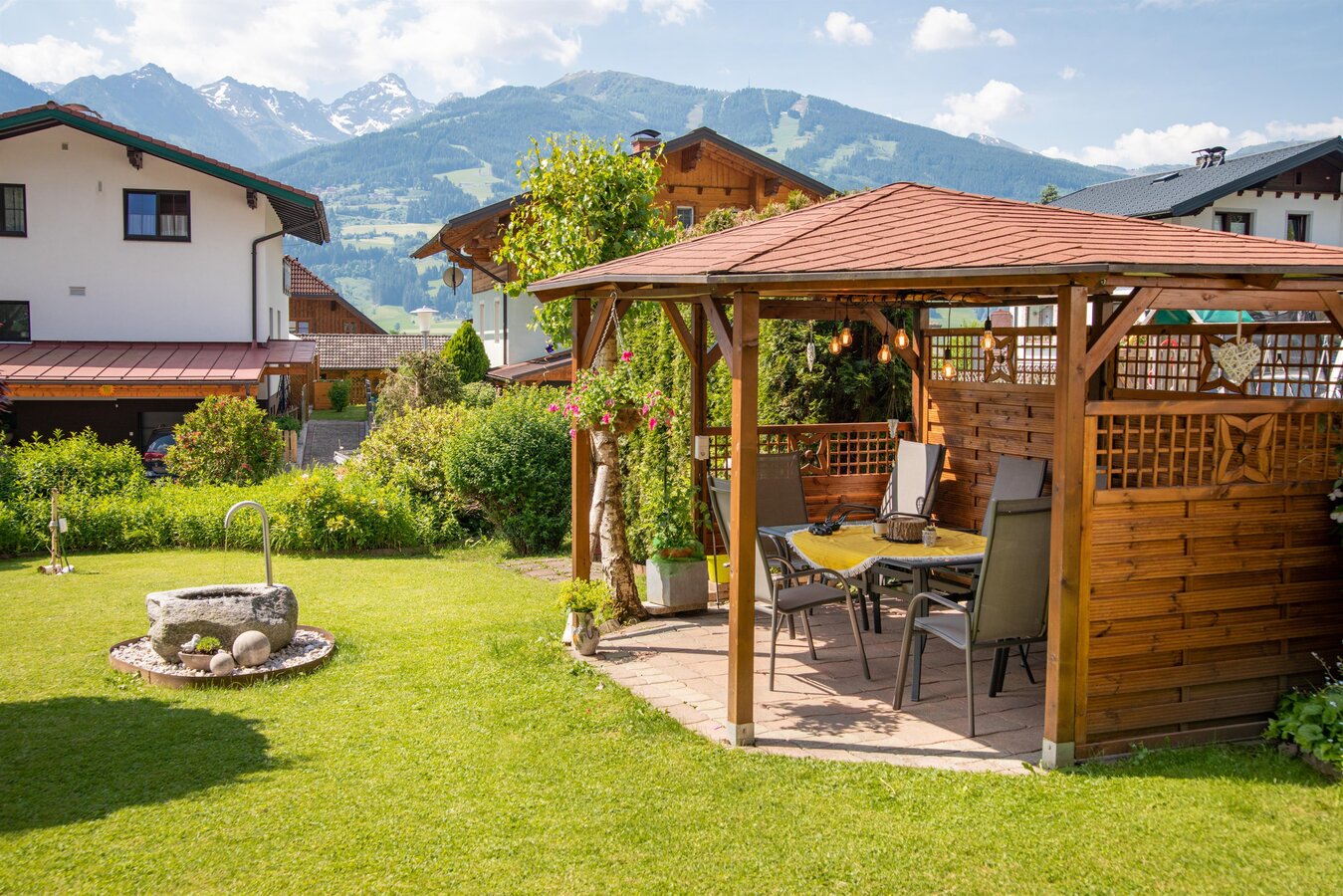 Our house lies in a sunny, quiet location. 3 spacious comfort rooms for 2-4 people, also as an APT for 6-9 pers. and 1 APT for 2-4 pers. Infrared sauna, fitness room, guest kitchen, delightful garden with playground & grill. 50m from the ski-bus stop!