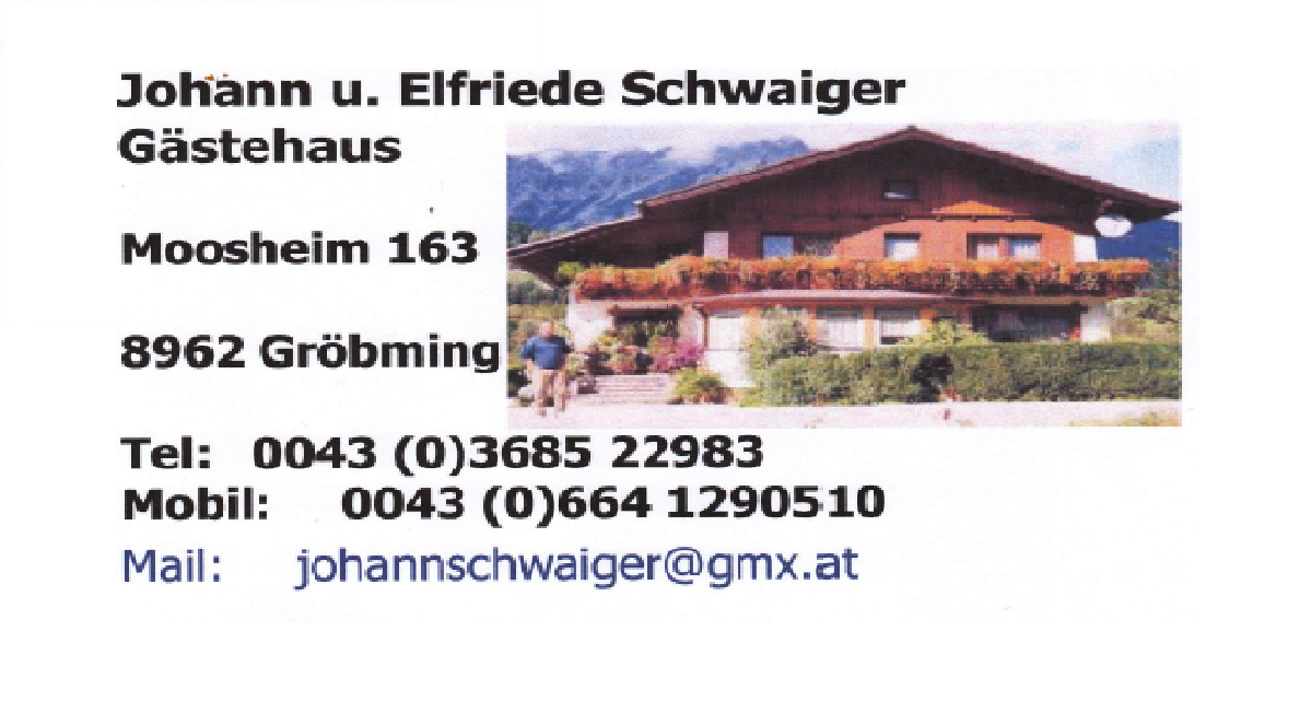 Nice that you take a look at our private board. The family-run house in Moosheim offers the ideal starting point for many Urlaubsaktivitäten.egal to which season. In a few minutes you reach the 4-Berge-Schischaukel, the Adventure park and the Zipline on Stoderzinken, as well as the hiking area of the entire Dachstein-Tauern region with the Nature Park Sölktäler. In the village about 5 minutes walk is a Paragleitschule, the Ennsradweg and some bike paths lead past the house. Our rooms are equipped with shower / WC and balcony, TV and W-LAN connection, a guest kitchen is available