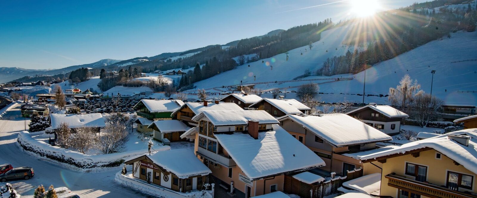 Our house is right in the center of sports – right by the Hauser Kaibling lift – ski back to the house – 1.5 km from DT golf course – in the hiking paradise of Schladming-Dachstein & a base for many sporty activities. Our house provides exclusive comforts. Well-being according to Pastor Sebastian Kneipp. Massages in-house. WINTER PROGRAM: "All inclusive" 7 days HB, 6-day ski pass, all drinks free, brkfst. buffet, warm buffet with salad, & cheese buffet. FAMILY SUMMER: exciting vacation incl. Sommercard, kid's 6 to 15 yrs. old 75 % discount. WLAN free use.