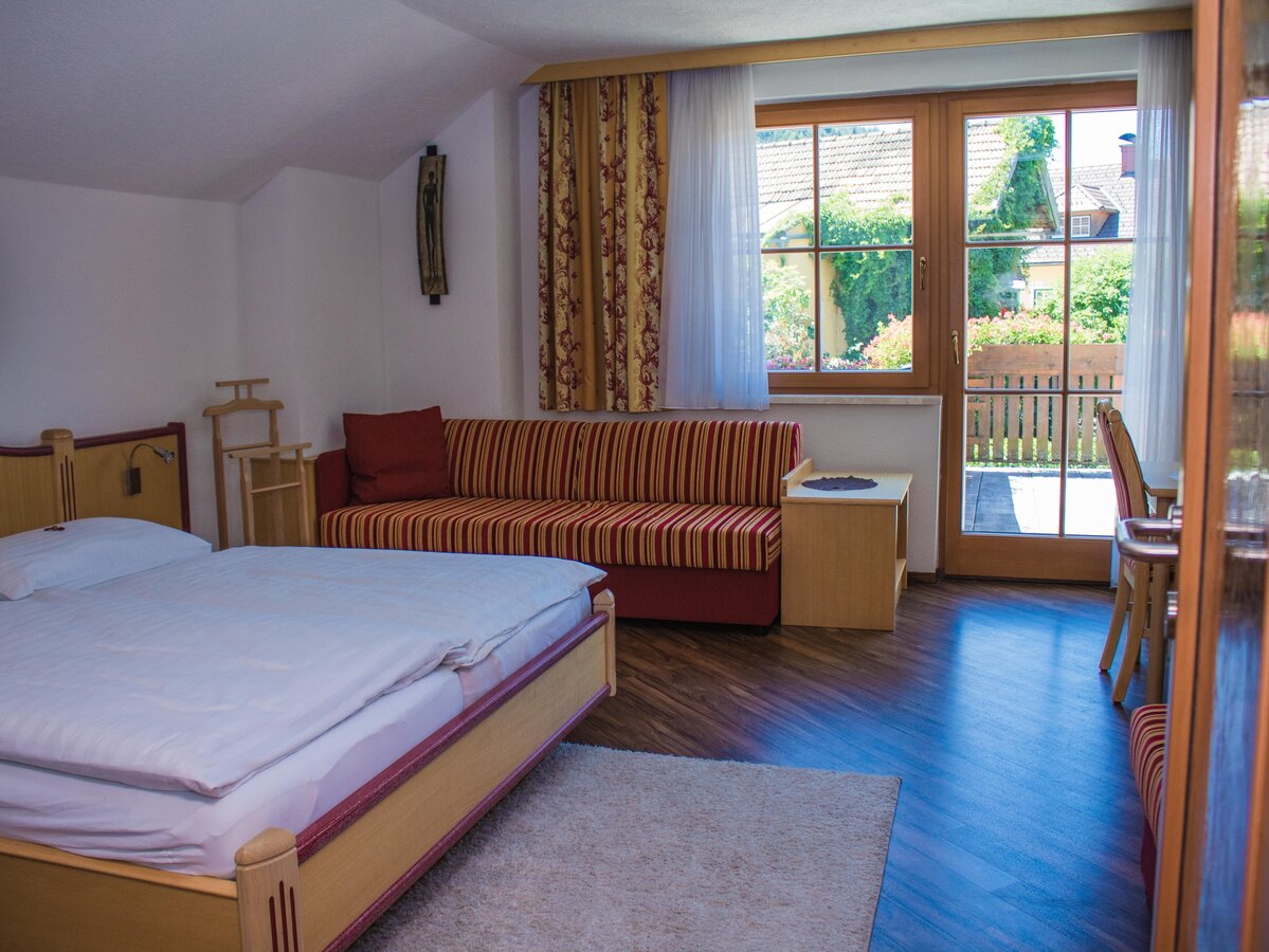 Our new, bright and large comfort rooms as well as our apartments offer many amenities and are equipped with allergy-friendly bed linen and floors. Alternatively, you can also benefit from a magnificent terrace view of the highest free-standing mountain in Europe, the Grimming at 2,351 m.